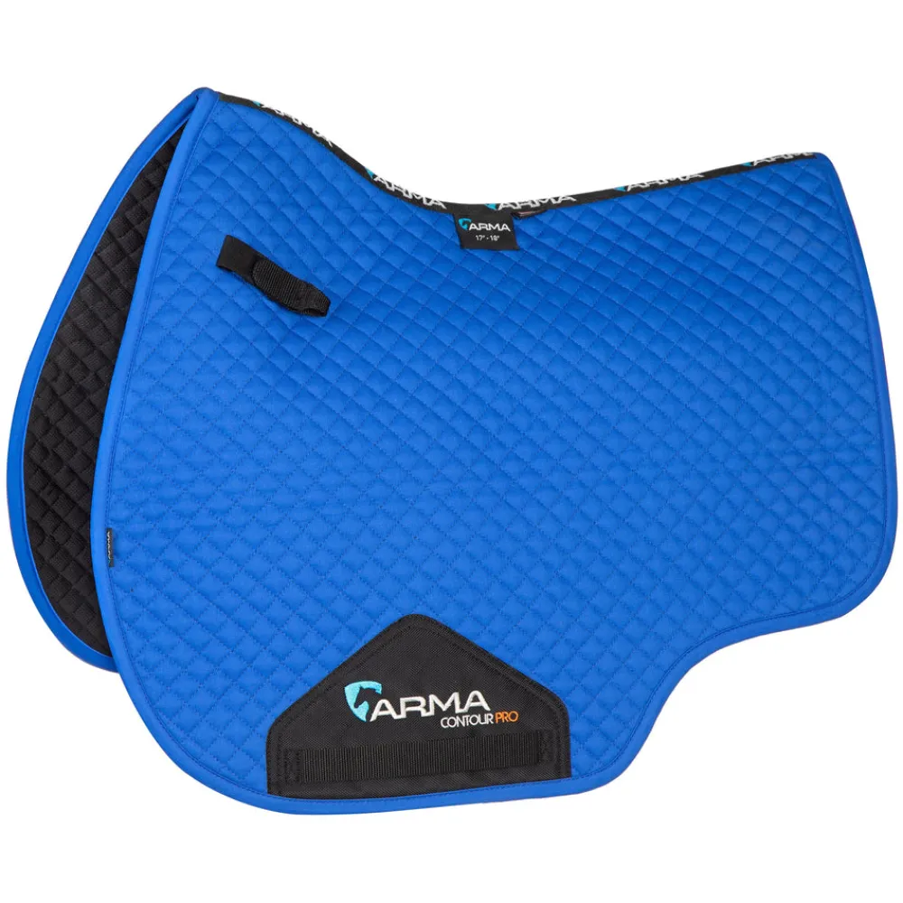 Stand out with the ARMA cotton finish Jump saddlecloth, smart enough for competing or for everyday use. BREATHABLE stay-smart anti-pill 100% cotton outer. ULTRA DRI ZONE lining instantly wicks sweat from the horse to reduce the risk of rubbing and increase comfort. Vibrant colour range. Girth loops and elasticated D-ring straps for convenient security. Hardwearing girth guards. Contoured shape for good clearance. Machine washable.