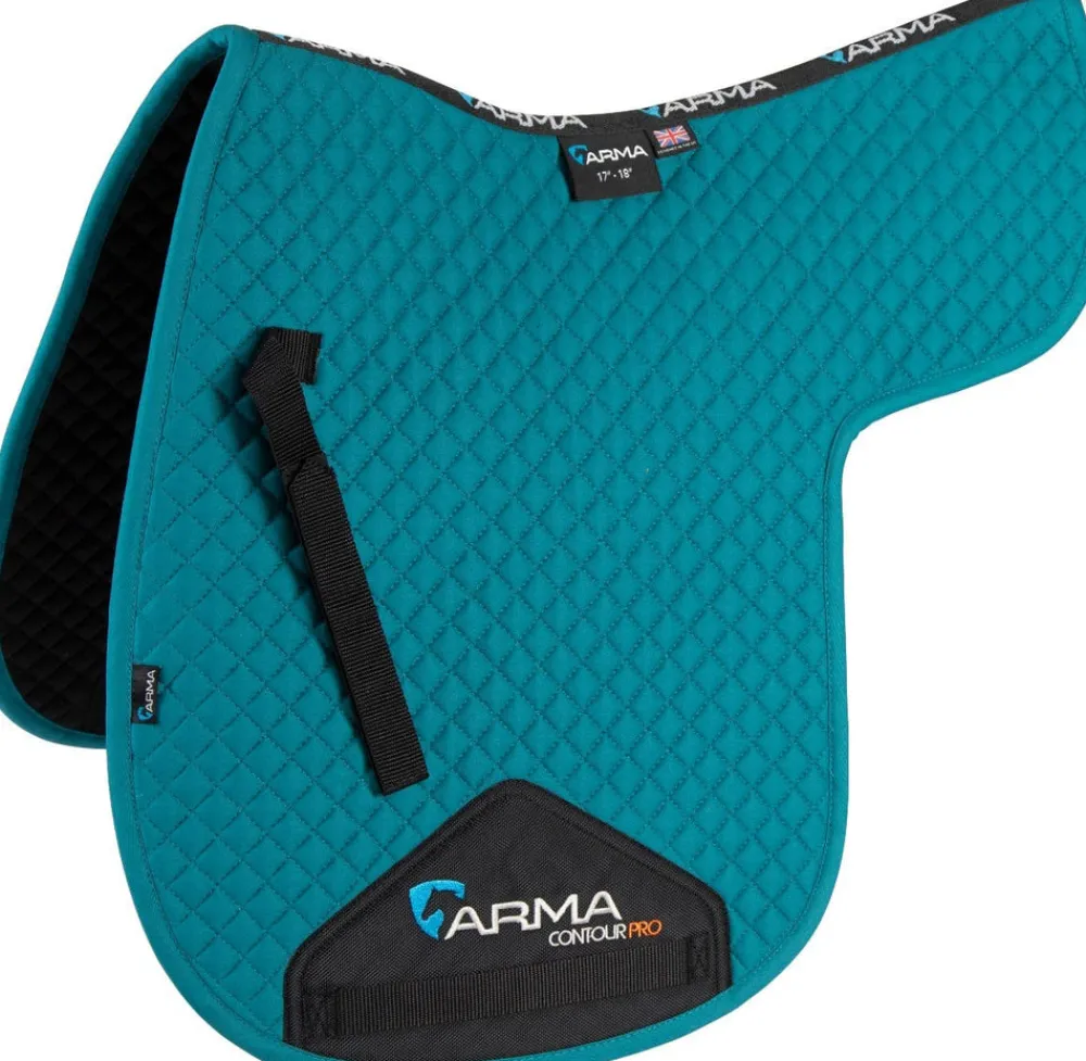 Stand out with the ARMA cotton finish numnah, smart enough for competing or for everyday use. BREATHABLE stay-smart anti-pill 100% cotton outer. ULTRA DRI ZONE lining instantly wicks sweat from the horse to reduce the risk of rubbing and increase comfort. Vibrant colour range. Girth loops and touch close retaining straps. Hardwearing girth guards. Contoured shape for good clearance. Machine washable.