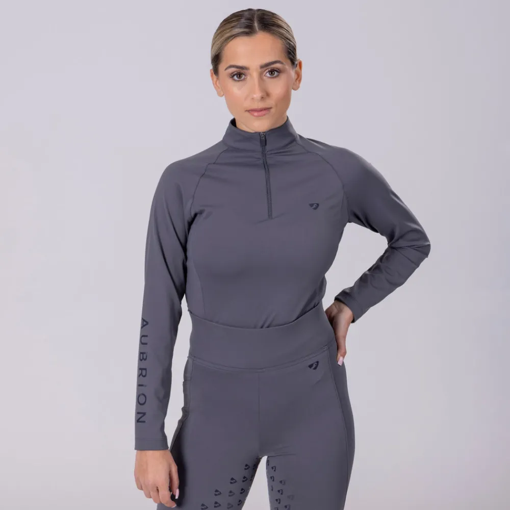 Offering year-round versatility, the Aubrion Eltar base layer offers a wicking next-to-skin layer with all round stretch. Ideal for general use and as part of a layering system. The 1/4 zip highline neck allows for optimal ventilation and versatile wear to regulate your comfort. Eltar brings essential performance to your riding along with coordinated looks for you and your horse. Key features: moisture wicking, quick drying, breathable, smooth feel, long sleeves, 1/4 zip at neck, comfort seams, self-colour Aubrion silicone prints.