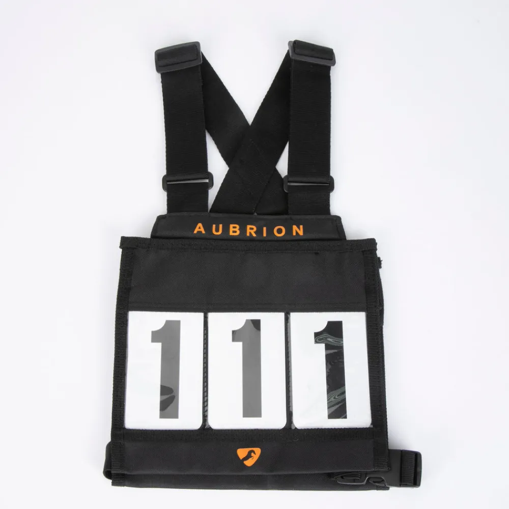 The fully adjustable Aubrion number bib set ensures you have all you need to be competition number-ready. The bib features a 3 digit number display in wipe-clean transparent plastic holders at the rider’s front and back. Robust number cards are inserted at the reverse of the display via touch close flaps. Proportioned for children, adjustable shoulder straps allow a snug and secure fit. At the waist are elastic straps, one with a slider and a quick-release buckle for easy entry and securing. Aubrion prints to the front and back.