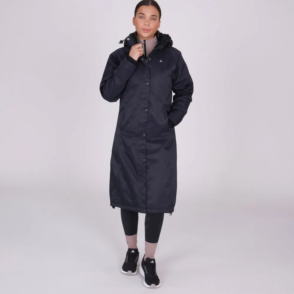 This Aubrion React Long Coat is waterproof, making it as perfect for riding in wet weather as it is for running errands in town! The panels on the rear of the coat create a sophisticated, flattering look whilst the adjustable and detachable hood allows you to refine your style. A rear zipped riding gusset allows you to ride in comfort. Other features include zip pockets to store valuables in and ribbed inner cuffs to block out the cold weather. Lined with thermal, luxe faux fur to the body. Outer fabric waterproof rating: 10,000mm with breathability rating 6000g/m2/24h. BIONIC-FINISH® ECO, fluorine-free water repellent technology encourages moisture to shed, bead up and roll off the outer surface of the garment to help maintain breathability.