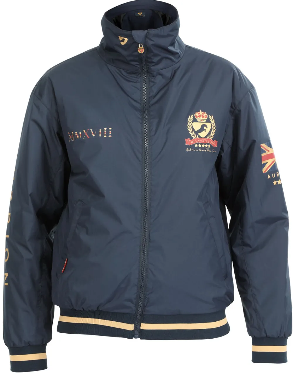 Be a team player in luxury equestrian wear blending top-class performance with contemporary style. The Aubrion Team Jacket is fully waterproof and breathable and has a lightweight inner fill to keep you protected, comfortable and warm with full satin lining. The detail: waterproof & breathable, taped seams, light in weight with insulated padding, full satin lining, elasticated cuffs and hem, two exterior zip pockets, reverse front logo zip with chin guard, high neck with a soft lining, taped seams, Aubrion Team prints. Outer fabric waterproof rating: 5000mm with breathability rating 5000g/m2/24h. DWR (durable water repellent) finish causes moisture to shed, bead up and roll off the outer surface of the garment to help maintain breathability.