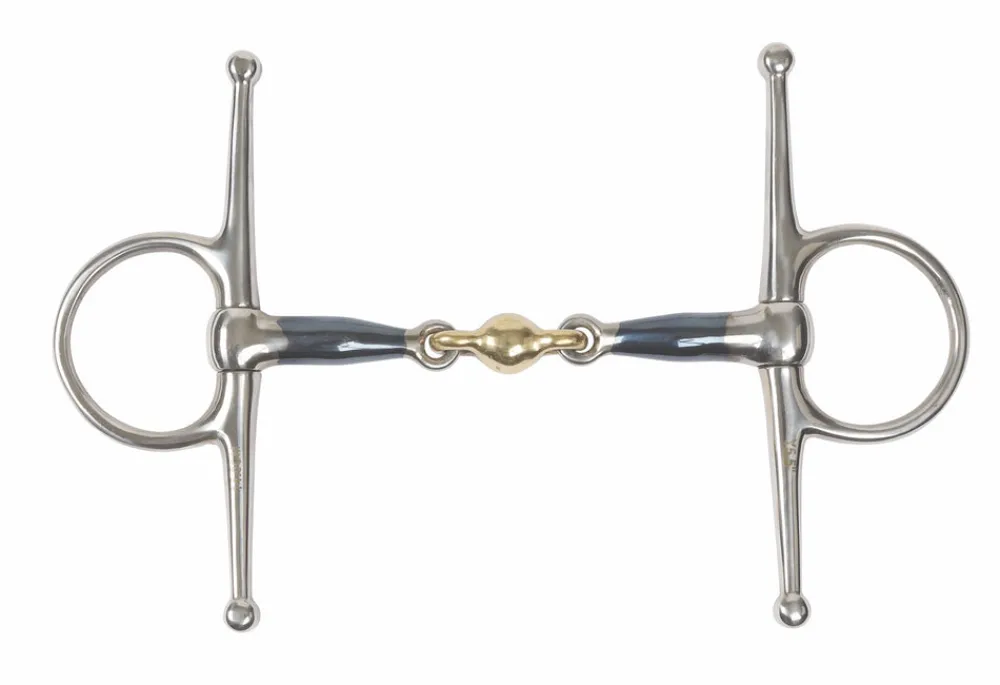 Full cheeks of this bit assist with steering, whilst the lozenge prevents the nutcracker action of a single joint. Mouthpiece thickness: 14mm. Cheek height: 160mm. Blue sweet iron mouthpieces oxidise easily to create warmth with a sweet taste which helps with bit acceptance and encourages salivation. Please note the blue colour will fade with use. Stainless steel is used for the cheeks due to it being durable, easy to clean and resistance to rust.