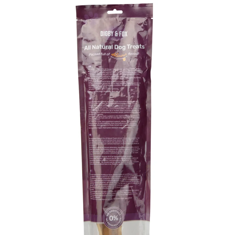 Buffalo skin chews are long lasting, keeping your dog busy for longer. This extra large version will provide plenty of jaw workout time. Low in fat and high in collagen for a naturally shiny coat. The Digby & Fox natural raw hide range provides your dog with mental stimulation and supports dental health. They offer a high protein, low fat, nutritionally rich supplement to your dog’s diet. Gentle on the stomach, gluten free and 100% digestible. A wide range of choice is available to suit all breeds. Air dried from raw to retain vital nutrients, delicious smell and flavour your dog will love. Free from artificial flavouring and food dyes. Suitable for puppies from 12 weeks. Due to the natural nature of the product, piece sizes may vary. Length guide: 65cm. Composition: 100% dried buffalo scalp.