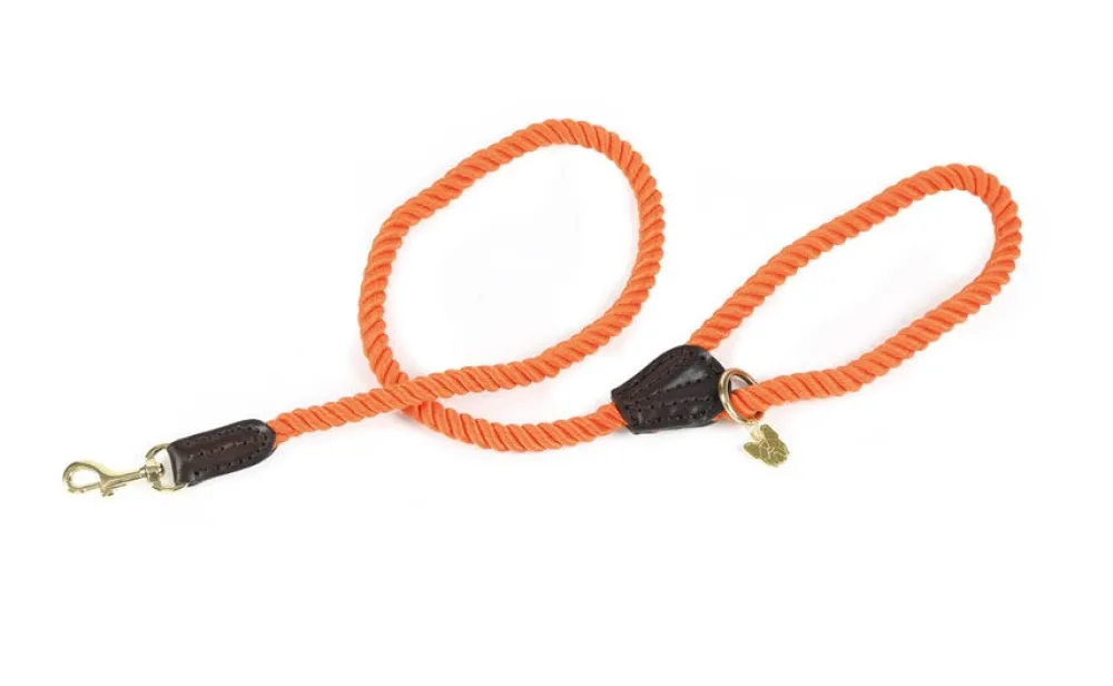 Ready for walkies! This flexible dog lead is made from soft twisted rope and available in a variety of bright colours! Brass ring, leather fittings, die cast Digby & Fox tag.
