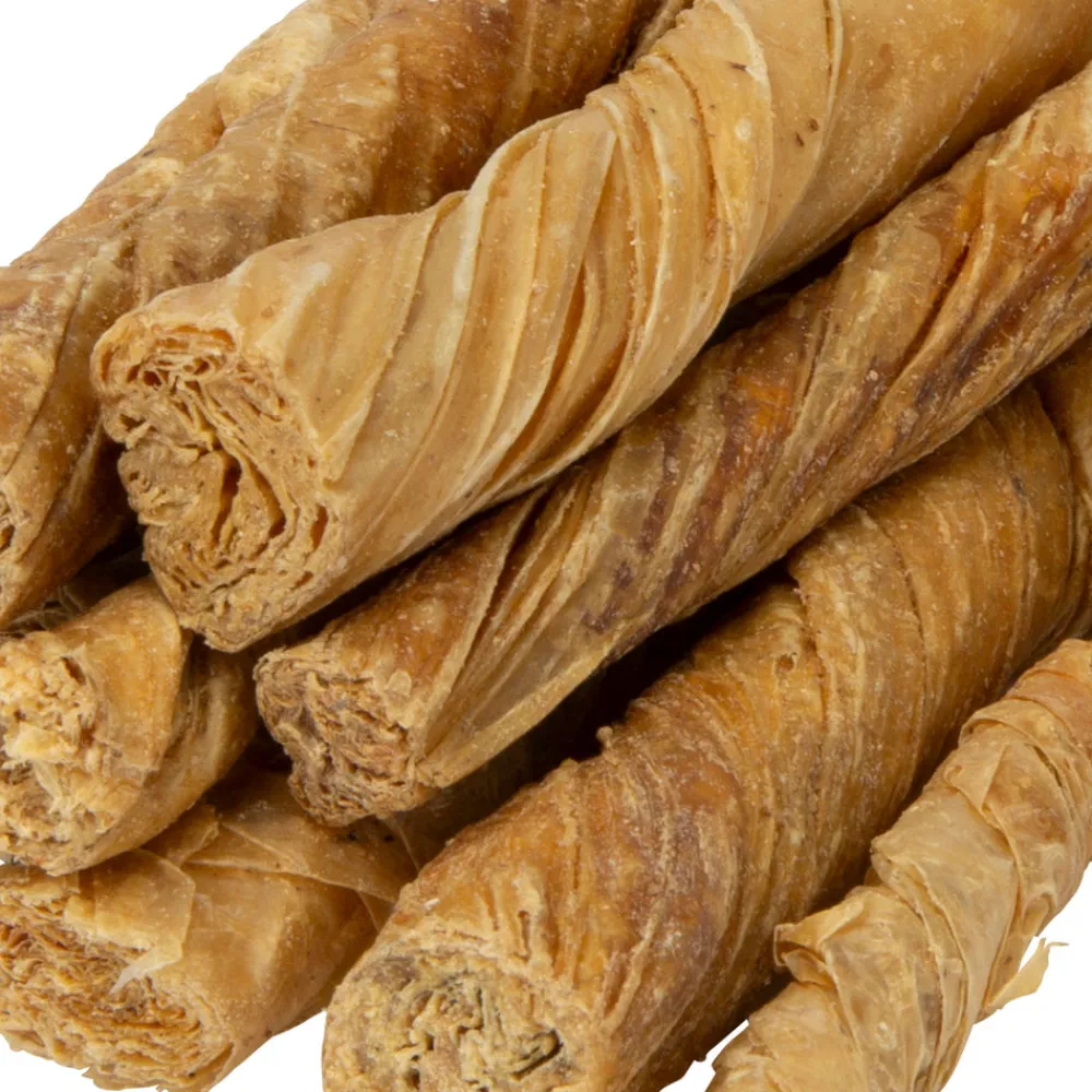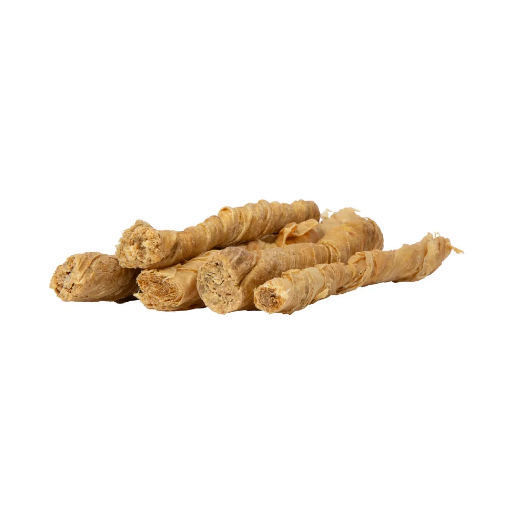 Great as a reward or daily treat, buffalo twisted bladder gives your dog an appetising treat that is highly digestible and long lasting. The Digby & Fox natural raw hide range provides your dog with mental stimulation and supports dental health. They offer a high protein, low fat, nutritionally rich supplement to your dog’s diet. Gentle on the stomach, gluten free and 100% digestible. A wide range of choice is available to suit all breeds. Air dried from raw to retain vital nutrients, delicious smell and flavour your dog will love. Free from artificial flavouring and food dyes. Suitable for puppies from 12 weeks. Due to the natural nature of the product, piece sizes may vary. Length guide: 12cm. Composition: 100% buffalo bladder.