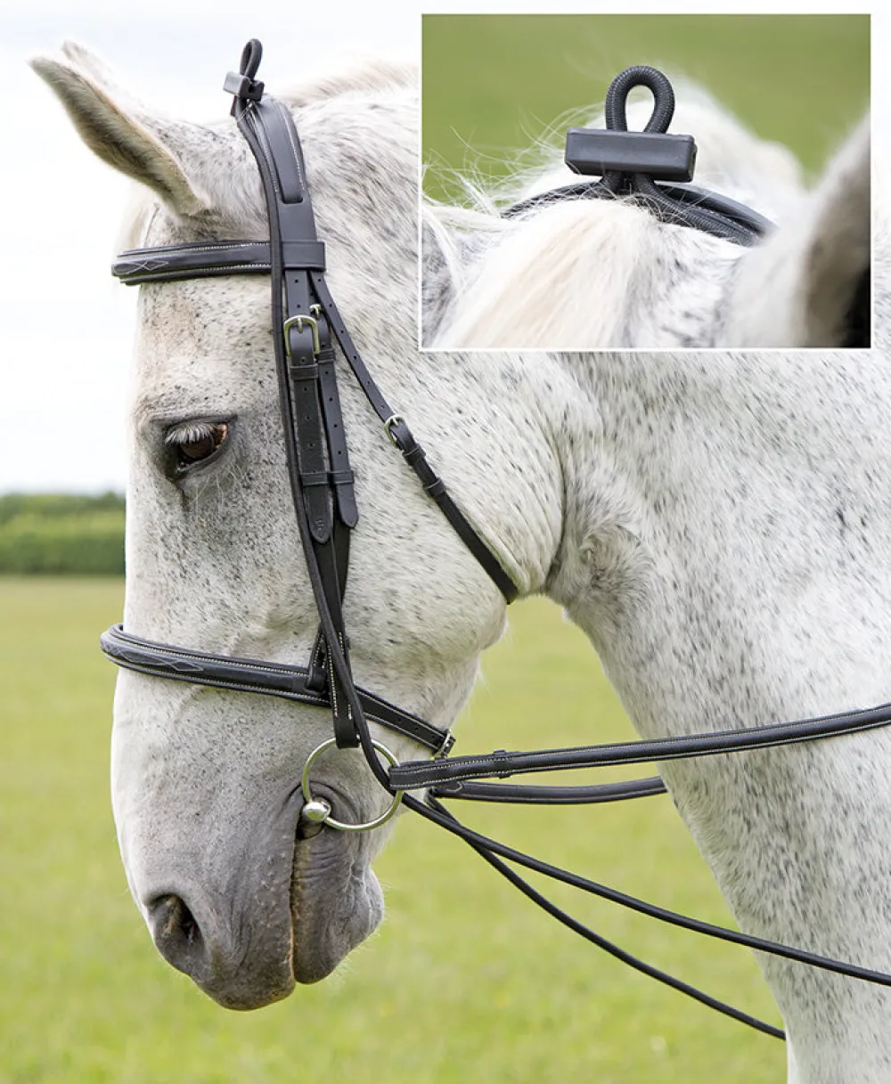 Elastic training reins gently encourage correct head carriage by applying light pressure at the poll. Easy to fit, the elastic passes through the bit and clips on to either the saddle D-rings or girth. Made from 6mm tubular elastic with adjustment on the poll.