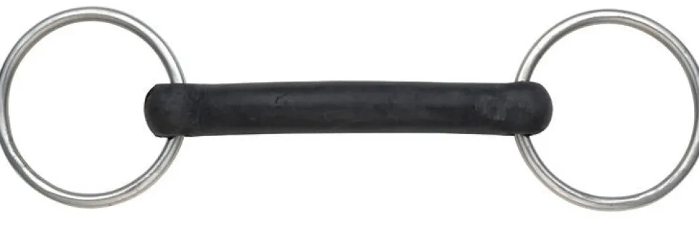 This bit is made from hard rubber so it is not flexible but is still kind due to the thick mouthpiece. Mouthpiece thickness: 21mm. Cheek height: 65mm. Rubber covered mouthpieces are generally thicker, making them softer and particularly suited to sensitive mouths. Available as mild, flexible rubber or treated with heat to produce a harder rubber which has a slightly stronger action. It is important that the horse salivates effectively using rubber mouthpiece bits. Stainless steel is used due to it being durable, easy to clean and resistance to rust.