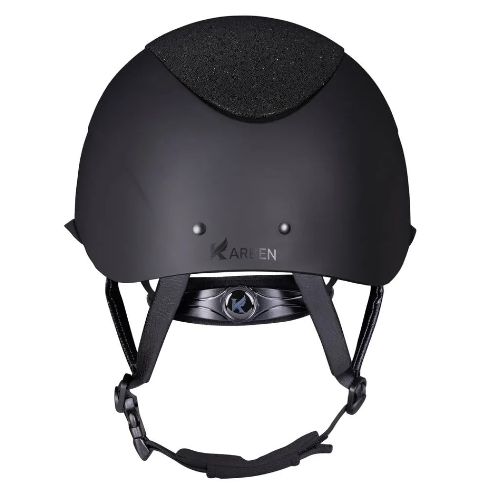 All eyes on you! Fine tune your fit with dial adjusted Karben Ellipse riding hats. The Lia features a crystal fabric crown that sparkles from all directions. The signature ellipse frame tapers away for elegance. Designed with carefully balanced geometry, the wide peak frames the face, the low profile sits deep on the head. FINER DETAIL: Scratch resistant carbon wrapped rim. Velvet touch under peak lining. BESPOKE FIT Micro Adjustable Dial System. PASSIVE VENTILATION SYSTEM air channels vent towards the head. SHOCK ABSORBING expanded polystyrene inner shell engineered with targeted ventilation shafts. Flexible fixed peak for impact energy absorption. Deeply padded COMFORT LUXE LINER with CoolDryTM headband and THERMOREGULATING 3D mesh crown. Fully adjustable 4-point harness with soft faux leather wrapped sides. Quick release buckle. Removable anti-rub chin guard. Machine washable linings. Reusable drawstring storage bag. PAS 015:2011 and VG1. BSI Kitemark, CE & UKCA.