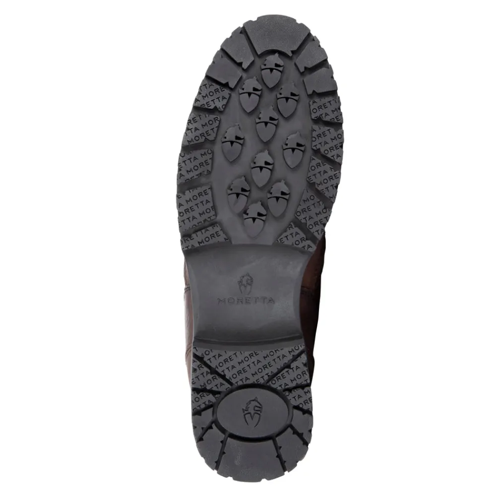 Keeping feet protected during colder weather, Atri benefits from a convenient zip front and a true country boot sole for added grip. Moretta moisture resistant technologies keep feet warm and dry, a membrane sock and zip gusset block water penetration whilst the boots remain breathable and sweat releasing. DRYFLEX water resistant leather dries quickly and remains flexible. The attractive oiled finish provides further weather protection and requires minimal maintenance. The upper is contoured for ergonomic comfort, the padded collar fits neatly. Luxe faux fur thermal linings keep the cold out. Anatomically moulded ActiveFlex insoles offer anti-shock joint support and Energiser instep relief. The performance rubber sole is optimised for traction over challenging terrain. Key features: DRYFLEX water resistant leather. Thermal luxe faux fur lining. Waterproof membrane sock. Waterproof gusseted tongue. Finger pulls. YKK zip. ActiveFlex insole with Impact Support System. Moretta XTR-Terrain outsole. Steel shanks.