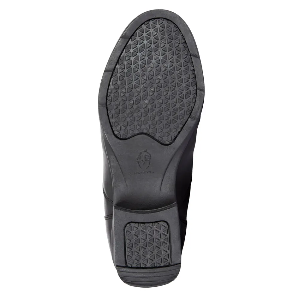 Cold weather riding feels more comfortable in Moretta Carmen paddock boots. Suitable for general riding and smart for the show ring when paired with Moretta gaiters. Easy-care hardwearing synthetic outers stay smart with the minimum of care. Thermal faux fur linings provide warm insulation through the winter. ActiveFlex insoles are anatomically moulded to offer anti-shock joint support and Energiser instep relief. Key features: Quick clean faux leather. Sherpa fleece thermal lining. UltraFit ankle insert. YKK zip. Non-slip spur rests. ActiveFlex insole with Impact Support System. Moretta shock absorbing rubber outsole. Steel shanks.