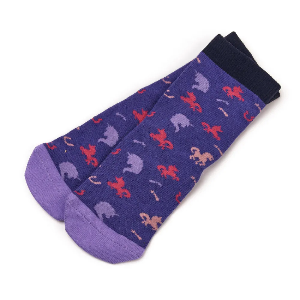 Knitted and stretchy, Tikaboo socks pull up to the knee for cosiness and never wrinkle. They feature fun designs with contrast colour toe and heel sections. Smooth heel and toe seams to avoid irritation. Child (8-12).