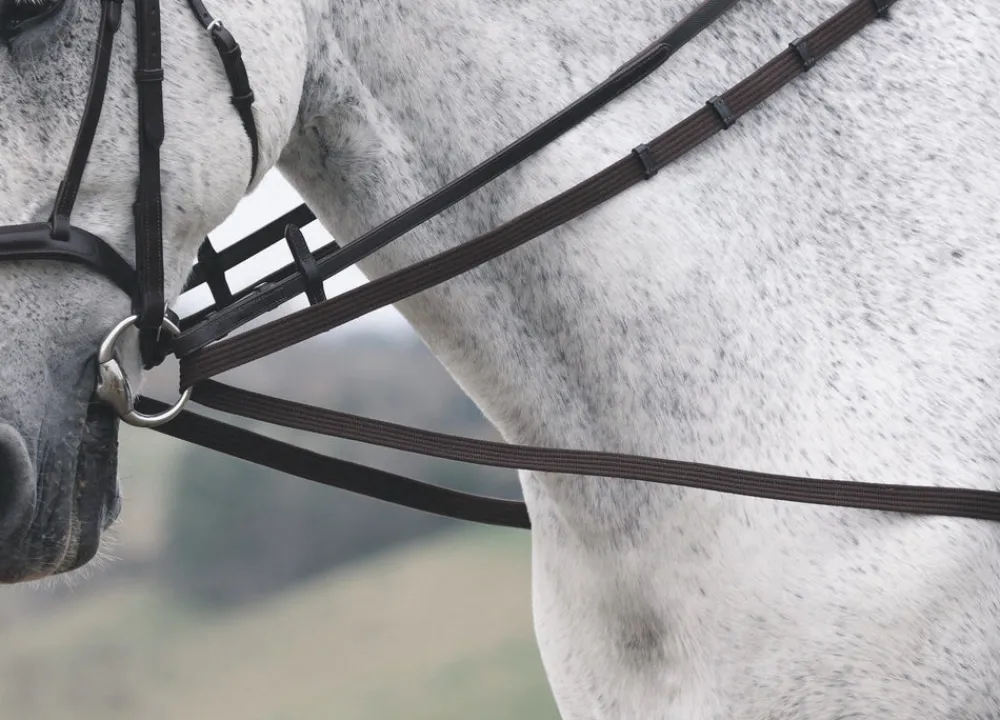 The cotton draw reins encourage a consistent head position and rounder frame when riding. Creates pressure on the bit through the bars and corners of the mouth which is released when the horse works correctly, encourage a rounder outline. Not to be used when jumping.