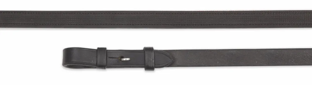 These leather dressage reins are lined on the inside edge with fine pimple rubber grips and come with hook stud billets and stainless steel fittings. Restrained design gives Velociti GARA leatherwork enduring appeal.