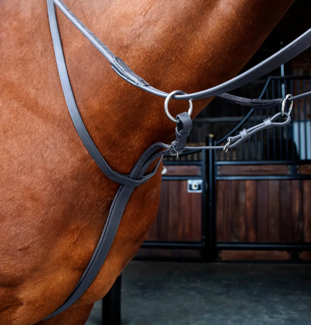 Engineered with the horse’s anatomy in mind, the Velociti RAPIDA running martingale is constructed for both performance and comfort. Adjustable at the neck, girth and martingale straps. Supple and hardwearing, leather is eco-friendly vegetable tanned leather, hand-stitched with self-colour thread and finished with high shine stainless steel harness buckles. Coordinates perfectly with bridles in the Velociti RAPIDA range.