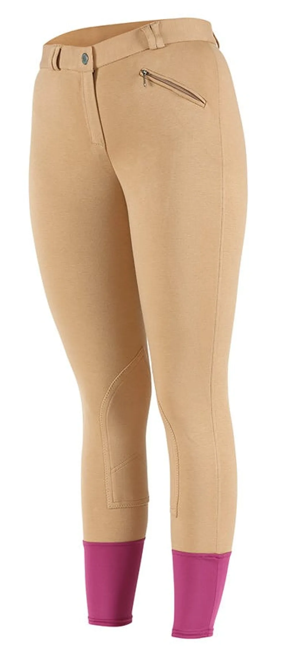 Wessex breeches are comfortable to wear in stretch cotton with an elasticated lower leg cuff for comfort inside boots. Contour seat, self-fabric knee patches, belt loops and zip hip pocket.