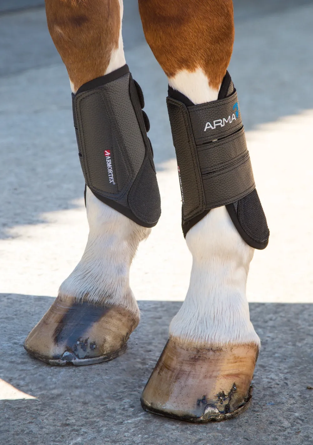 ARMA cross country professional level boots. Designed for 360 protection without compromising performance, these stylish, contoured boots protect joints and tendons from knocks whilst your horse is going cross country. The fiberglass polymer tendon shields for front legs protect both the digital flexor tendons and suspensory ligaments from over extension of the hind legs. Padding at the front protects the legs from bruising. Touch close straps. Quick dry. High impact protection. ARMORTEX® abrasion resistant strike pads. Breathable cooling system. Contoured superior fit. Durable. Lightweight and flexible.