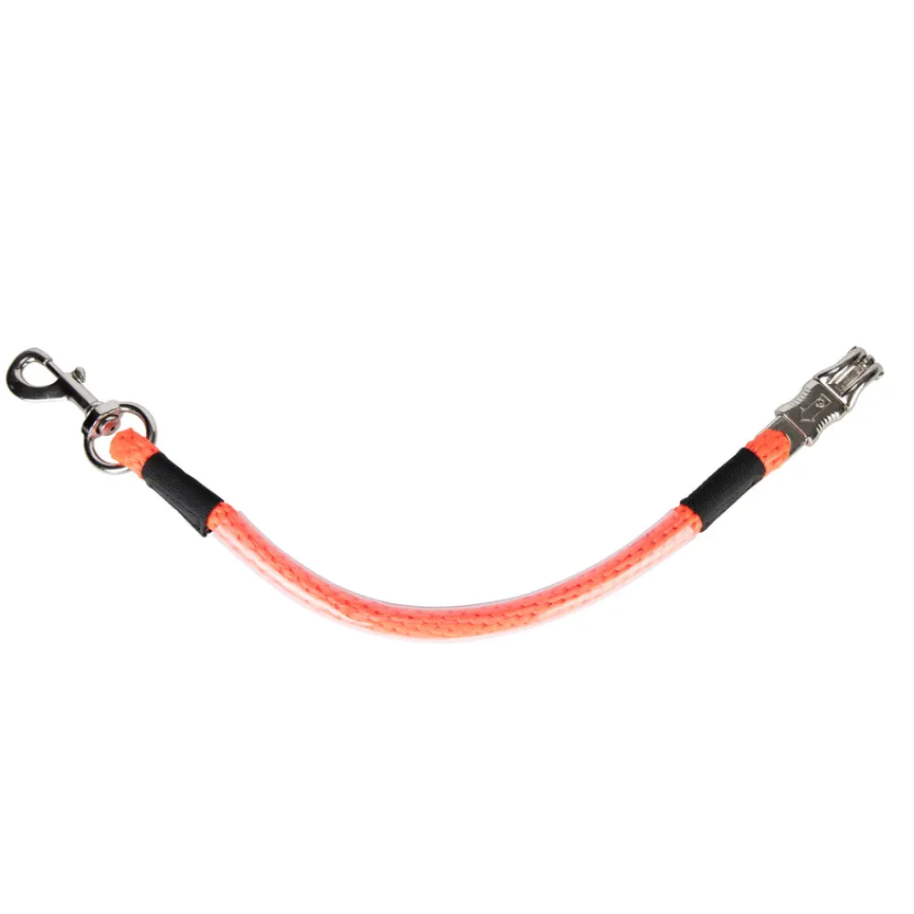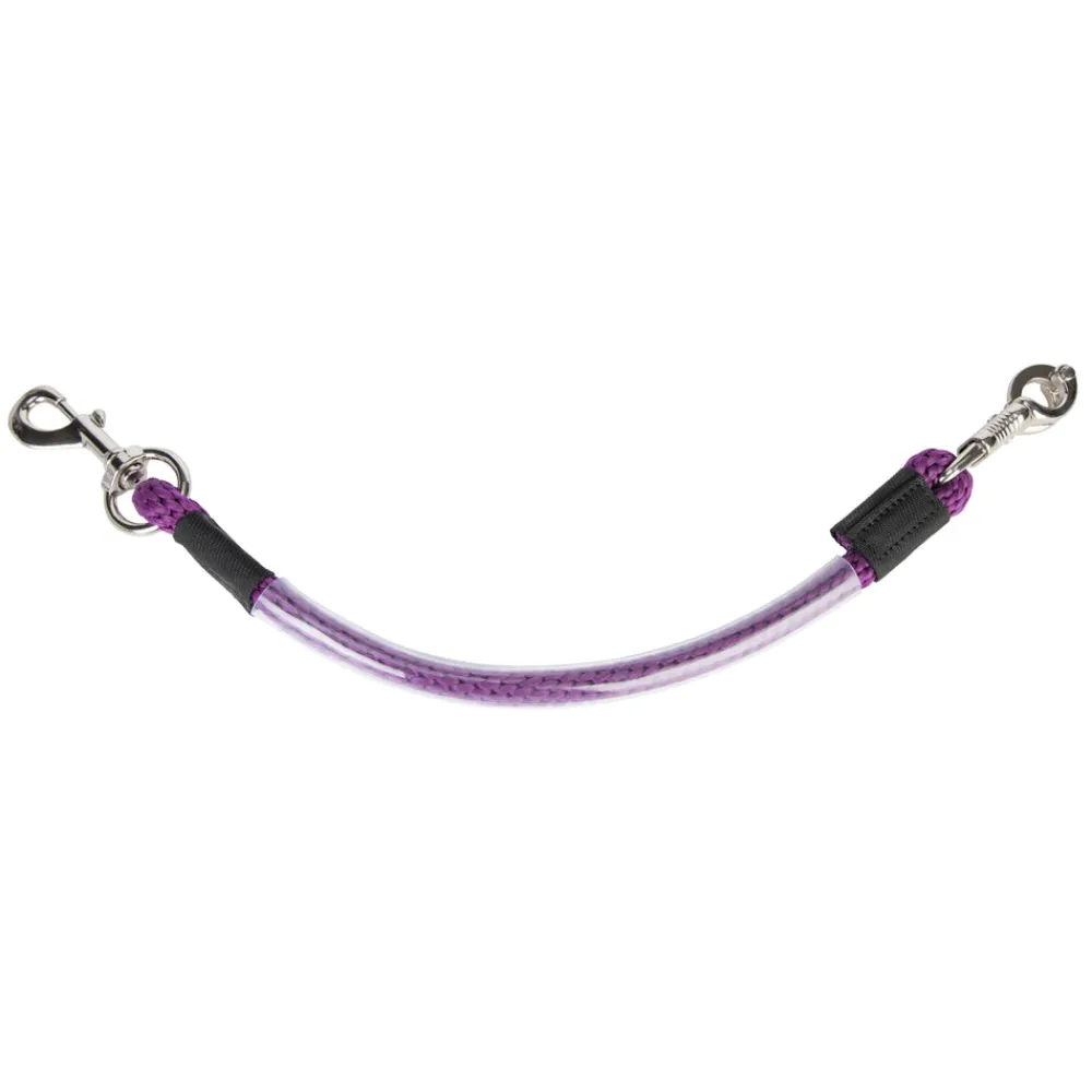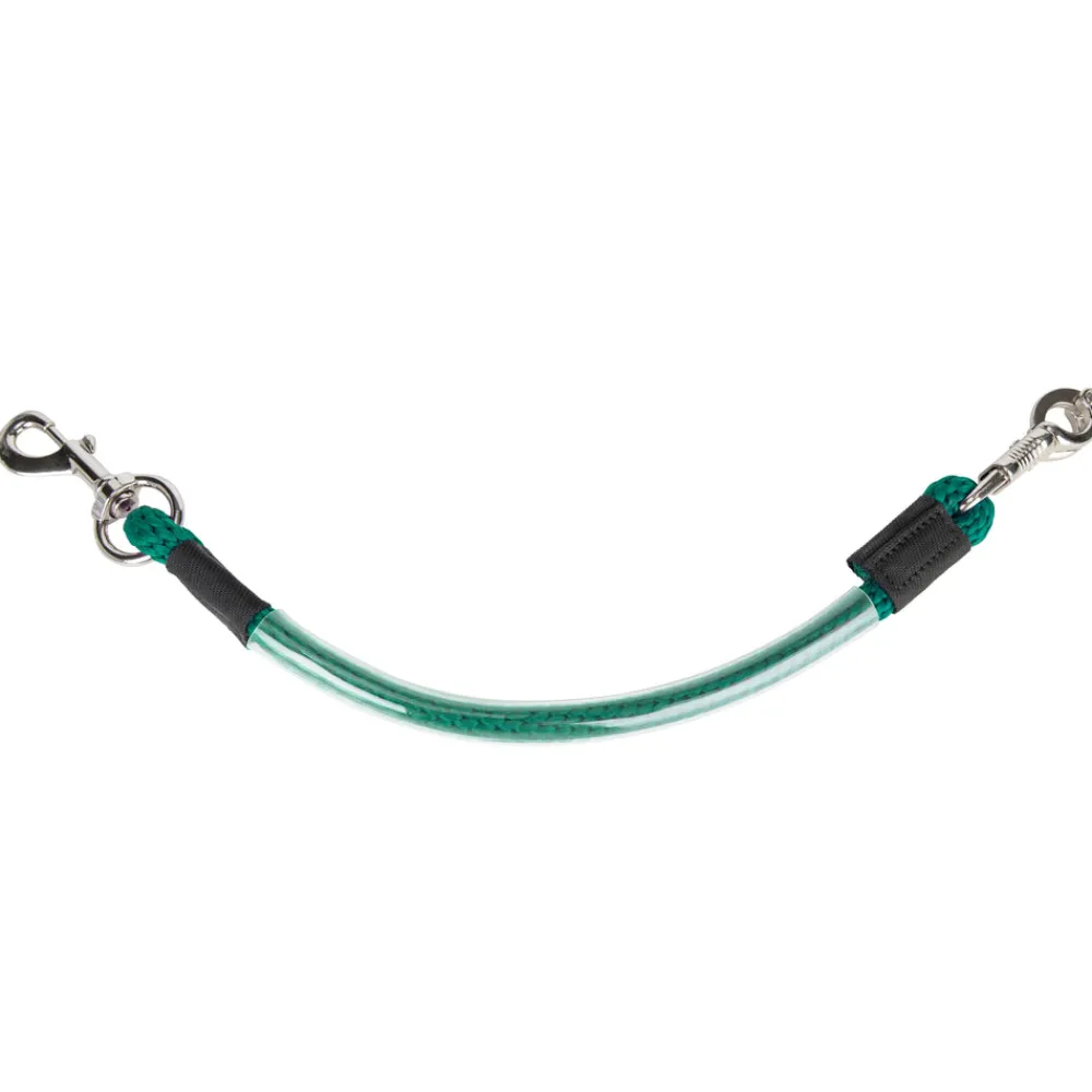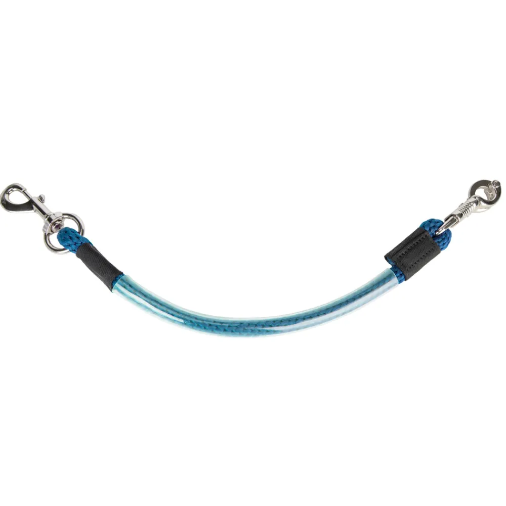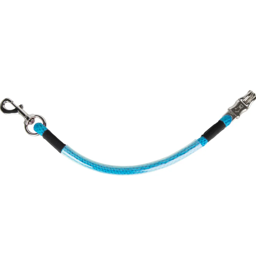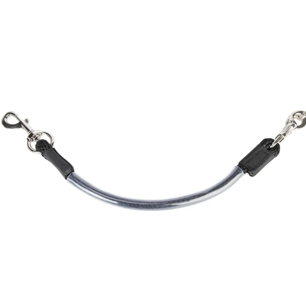 The heavy duty ARMA trailer tie quickly tethers the horse in the stable, yard or trailer, two can be used to safely cross tie a familiarised horse. The panic clip attaches to the headcollar and allows the handler to quickly intervene by pulling down on the clip and releasing the horse, reducing the risk of injury. The trigger clip end should be attached to a breakable loop, not directly to the tie ring. The robust cord is encased in a clear plastic tube to reduce wear and tear. Loops onto a tie ring. Ideal for the stable, yard or trailer. Total length 62cm.