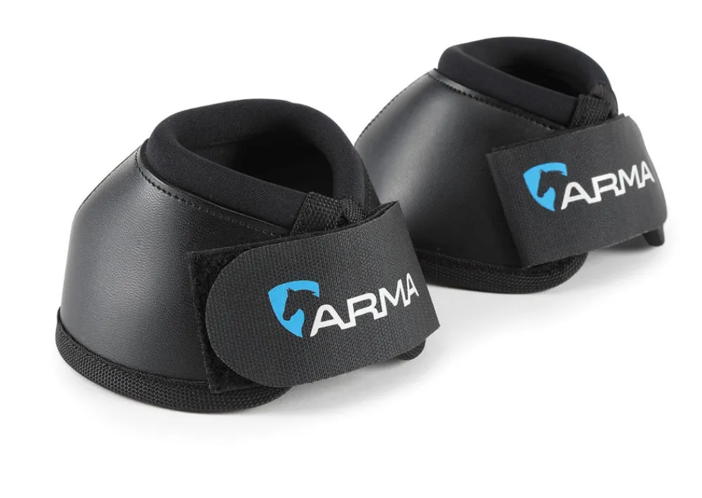 Dual action ARMA NX-MAX+ anatomic over reach boots, anatomically engineered to protect delicate areas from over reach injury. Tough scuff proof outers shield the heel bulb and deflect blows. Impact absorbing neoprene inners absorb shocks to create a stabilising effect. Deep neoprene collars protect the pasterns against bruising. Anti-spin nodules keep boots in place. Double lock touch close fastenings.