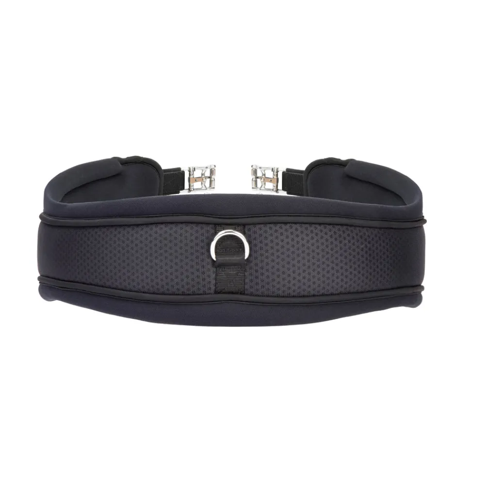 The ARMA Performance Atherstone Girth is designed in carefully engineered fabrics to promote dryness and enhance comfort for the horse. Built around a non-stretch nylon web core for strength, a heat responsive memory foam lining moulds to the body’s contours for a bespoke fit. Soft roll-away edges remove the risk of pinching and create a cushion effect. The outer girth features a 3D aerated surface to help bring air movement through to the underlayers, reducing moisture and heat build up. Contoured shaping supports the horse whilst allowing space behind the elbows for greater freedom of movement. Double layer pressure alleviating elastic inserts at both ends with curved self-closing loop bar roller buckles at one end, standard roller buckles at the other. A centre D-ring for martingale and breastplate attachment. Stainless steel fittings for long lasting performance.
