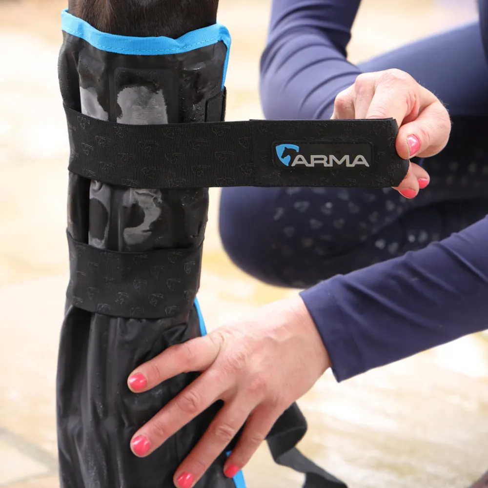 ARMA SubZero Ice Boots use cryotherapy ice cold therapy which reduces blood flow to the treated area, helping to speed up recovery. Useful in daily remedial management, post exercise extreme cold therapy is also helpful for treating acute injury; reducing the inflammatory response and for analgesic benefit to reduce pain. Quick and easy to use and suitable for any area of the horse leg. Chill boots in the freezer to activate the gel and use immediately or store in a cool bag if using out and about. Wrapped around the affected area of the leg, the 32 gel cushions in each boot conform to the leg shape for full coverage, quick close elastic straps secure the fit. Suitable for use on the front or hind legs. Set of 2.