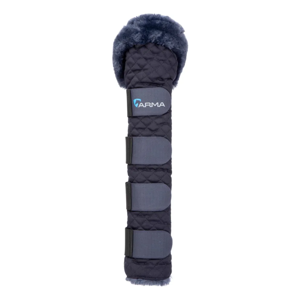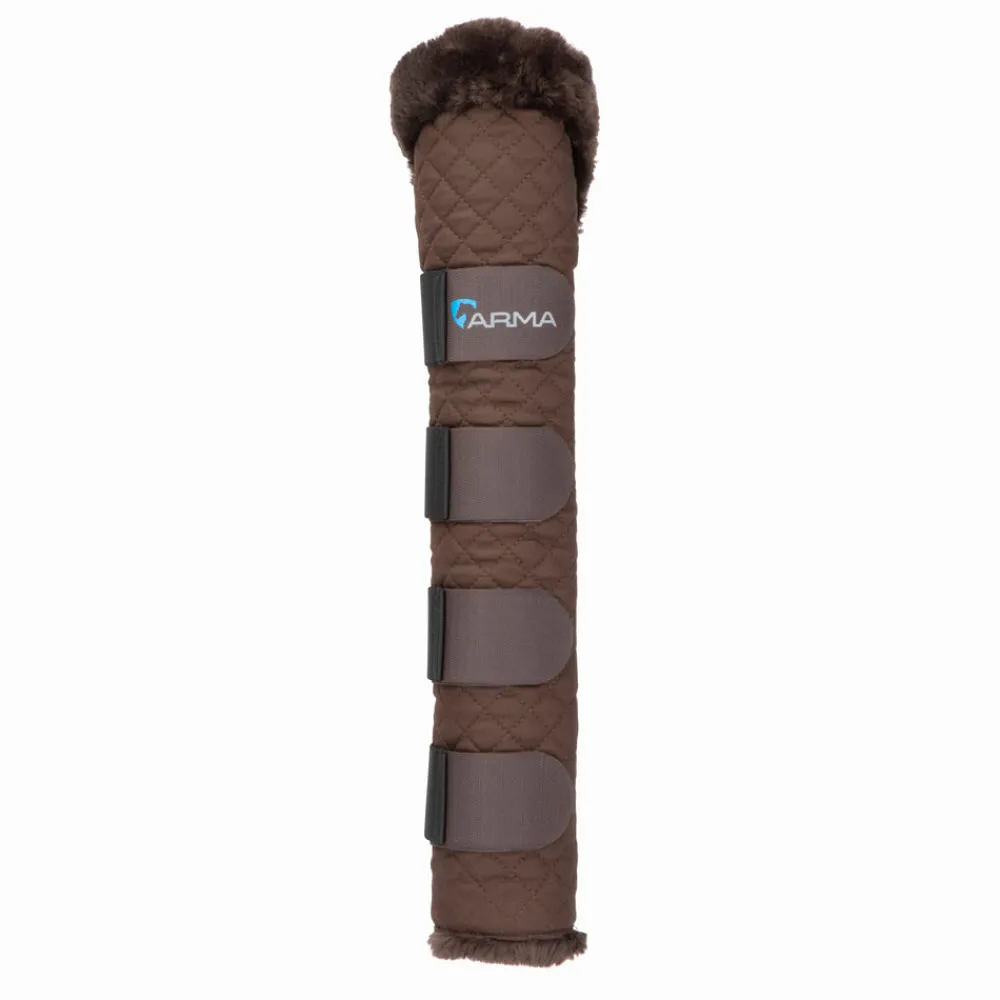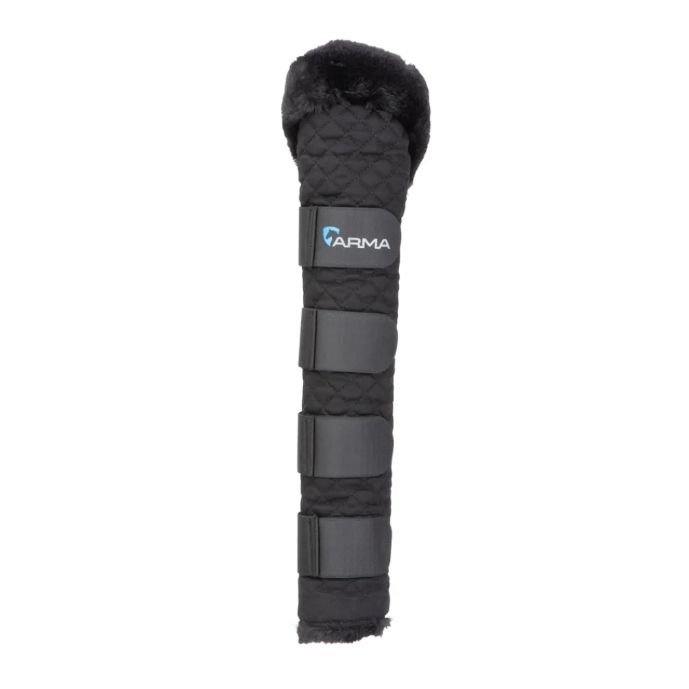 The ARMA deluxe quilted tail guard offers the ultimate travel protection. Smart cotton quilt is fully lined and trimmed with luxurious ProComfort SupaFleece fur for great show style. The SupaFleece fur adds a soft, non-abrasive lining to the quilted outer, protecting the tail and dock and encouraging air circulation for moisture management. Touch close straps secure the tail guard, elastic inserts flex as the horse moves without loosening the fit.Â
