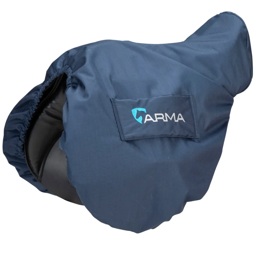 Keep your saddle shiny and spotless with this deluxe ARMA saddle cover. Tough and waterproof outer fabric protects saddles from the elements, while a sumptuously soft, faux fur lining keeps scratches at bay. Perfect for tack rooms and smart for travels. Features: ripstop outer fabric, waterproof, micro faux fur lining, elasticated hem, embroidered logos.