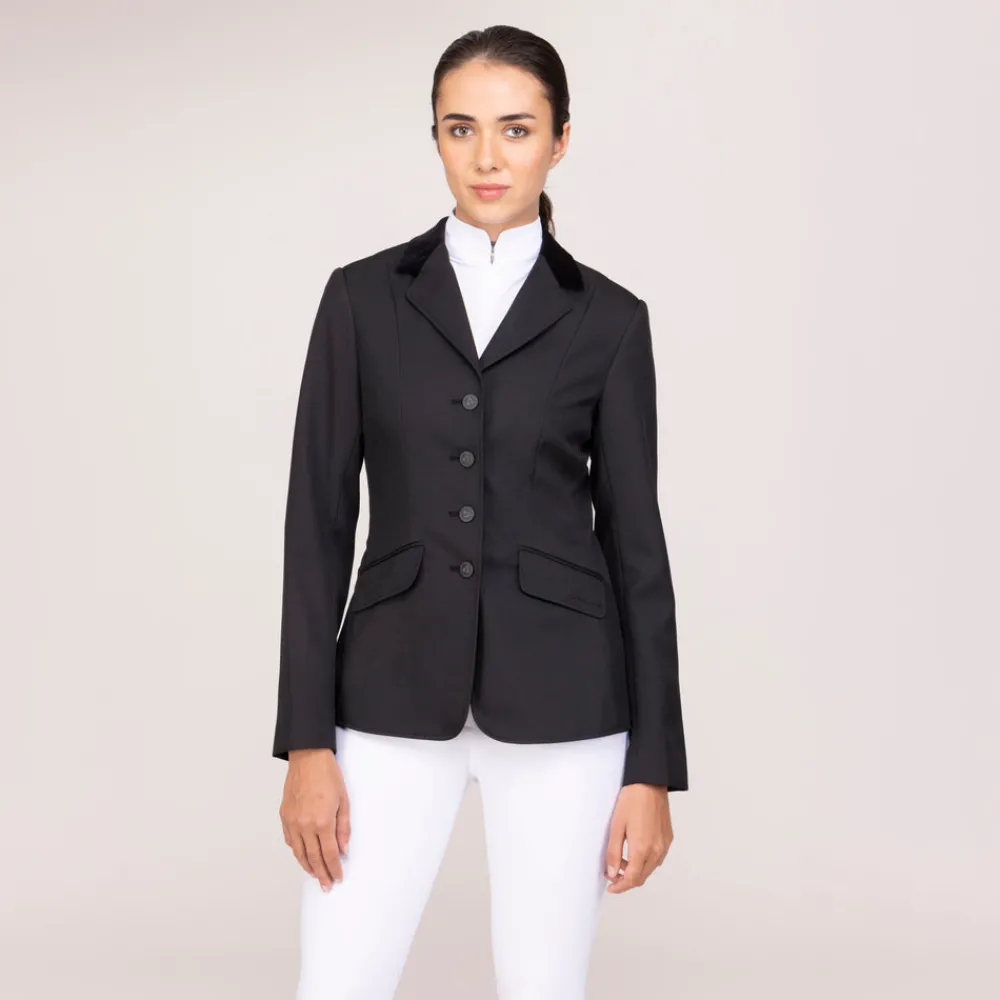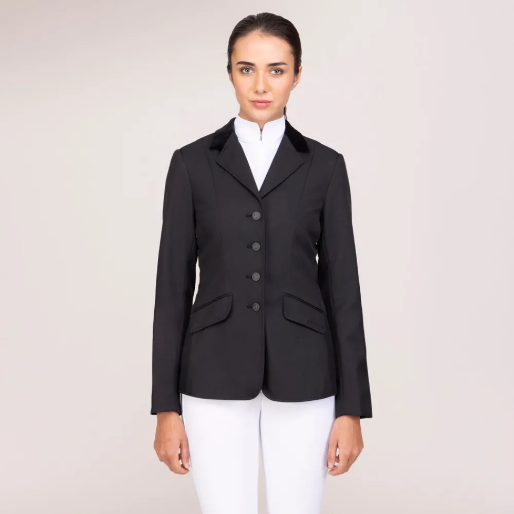 Smarten up your competition look with the Aubrion Aston Show Jacket. Tailored for a classic fit, body panelling contours the body for a flattering rider specific fit. Smartly accented with a colour-coded velvet collar and etched matt finish metal buttons at the front and cuffs. Style detail: velvet trim, neat revere collar, contour panelling, classic fit, 4 button placket, flap pockets, signature print satin lining, rear double vent, cuff button trims, Aubrion etched buttons.