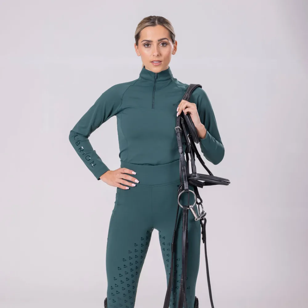 Offering year-round versatility, the Aubrion Eltar base layer offers a wicking next-to-skin layer with all round stretch. Ideal for general use and as part of a layering system. The 1/4 zip highline neck allows for optimal ventilation and versatile wear to regulate your comfort. Eltar brings essential performance to your riding along with coordinated looks for you and your horse. Key features: moisture wicking, quick drying, breathable, smooth feel, long sleeves, 1/4 zip at neck, comfort seams, self-colour Aubrion silicone prints.