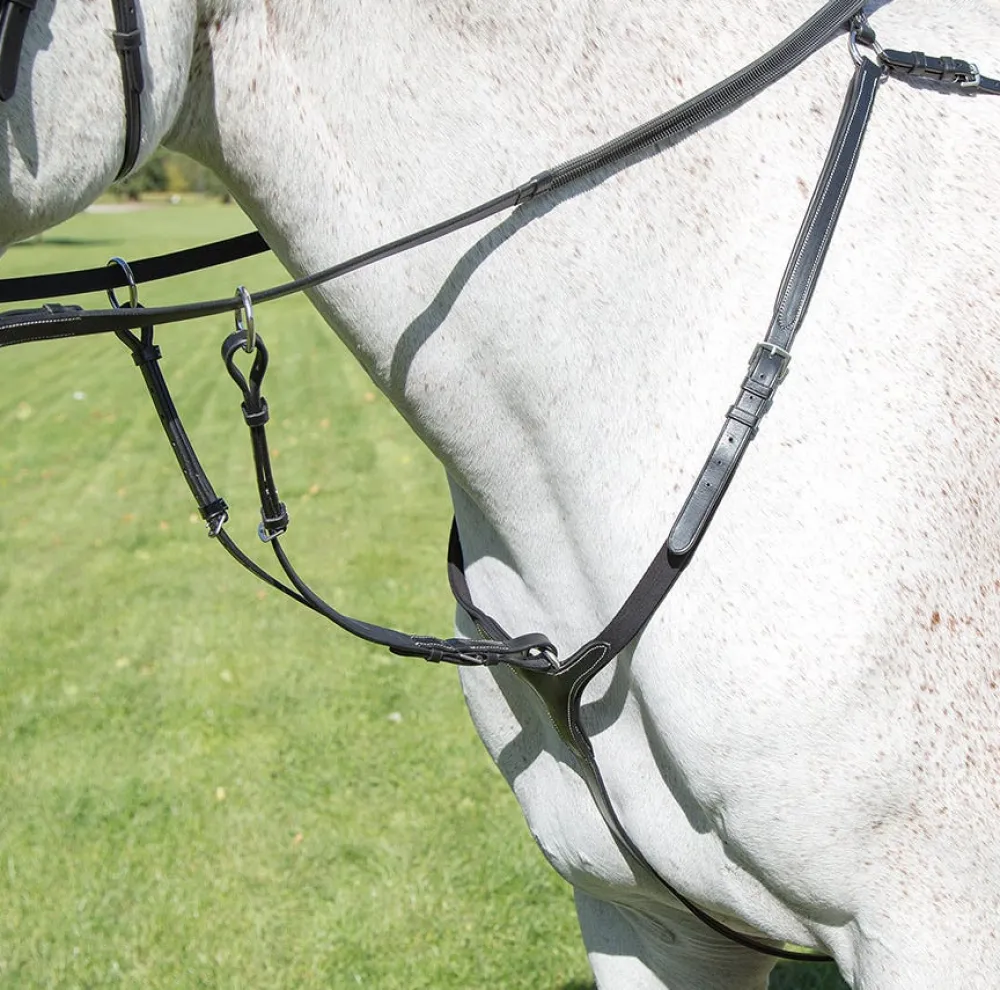 A super three point breastplate with distinctive feature stitching detail to coordinate with the Avignon bridles. Adjustable at both sides of the shoulders and padded at the withers and chest for comfort with a detachable running martingale attachment. Stainless steel fittings. Soft and supple, Avignon leatherwork exudes timeless style. Naked finish allows oil or conditioner to be absorbed. Vegetable tanned leather for a more sustainable finish.