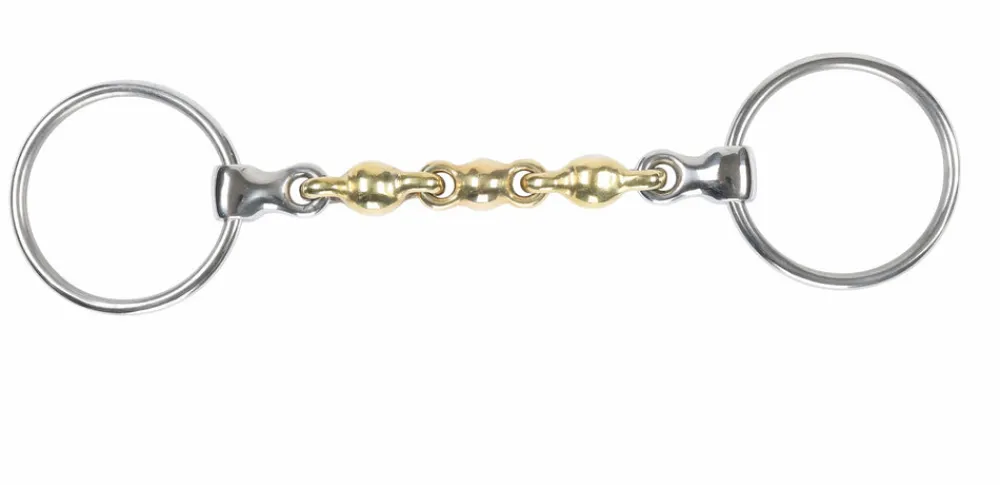This loose ring has a Waterford mouth made of many different links which makes it difficult for the horse to take a hold. Waterford mouth bits should be used under supervision or by an experienced rider. Mouthpiece thickness: 18mm. Cheek height: 65mm. Brass alloy mouth: Copper is alloyed with a harder metal to produce warm, durable mouthpieces which aid salivation. Stainless steel is used for the cheeks due to it being durable, easy to clean and resistance to rust.