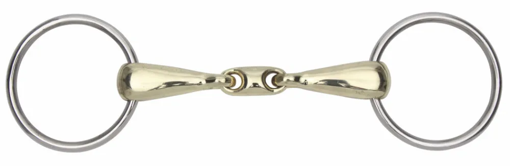 This training bit has a brass alloy mouthpiece to help the horse soften. Mouthpiece thickness: 14mm. Cheek height: 65mm. Brass alloy mouth: Copper is alloyed with a harder metal to produce warm, durable mouthpieces which aid salivation. Stainless steel is used for the cheeks due to it being durable, easy to clean and resistance to rust.