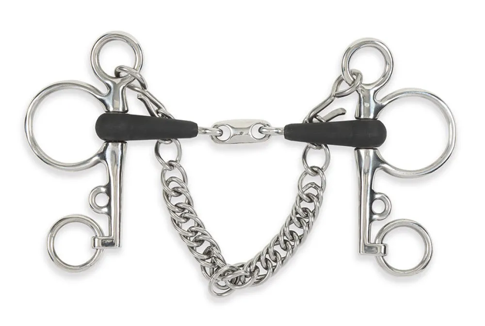 This double jointed pelham is often used to help control. The double joint with lozenge will soften the nutcracker action. Mouthpiece thickness: 15mm. Cheek height: 115mm (4.5″), 130mm (5″), 140mm (5.5″). The EquiKind+ coating is thinner than a rubber mouthpiece making them more comfortable for horses that don’t have room for a thick mouthpiece and ideal for sensitive mouths or horses that don’t like metal in their mouths. Stainless steel is used due to it being durable, easy to clean and resistance to rust.