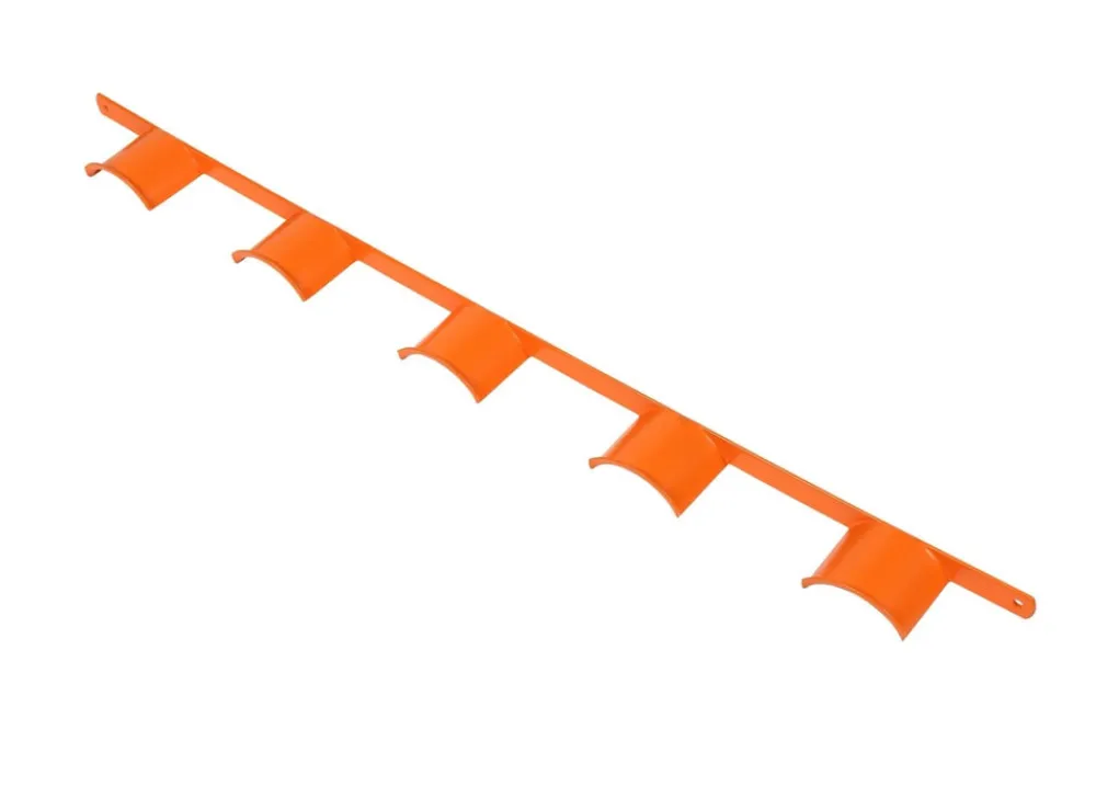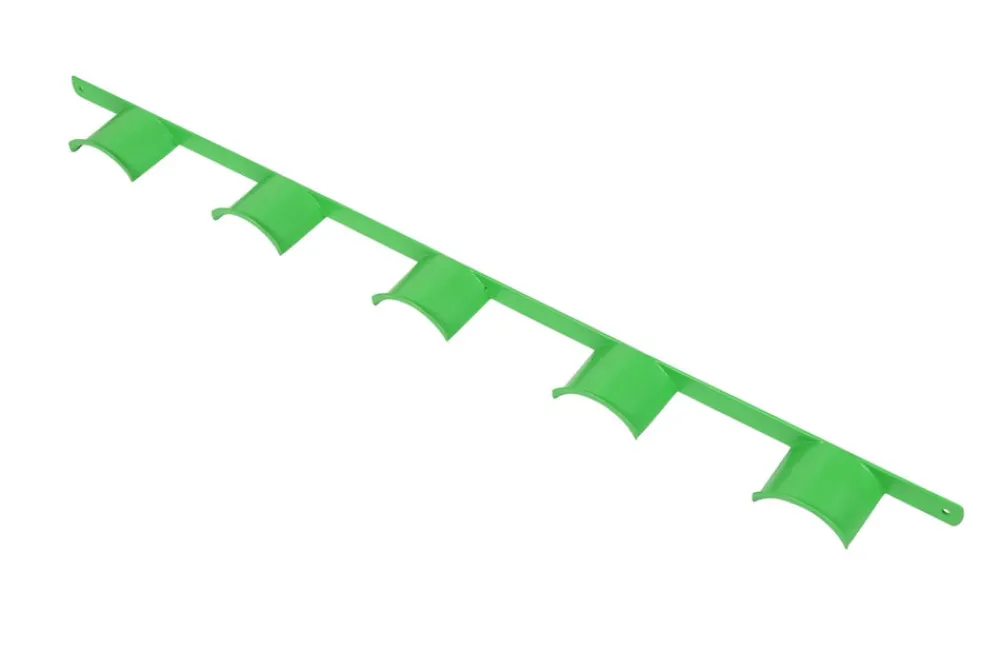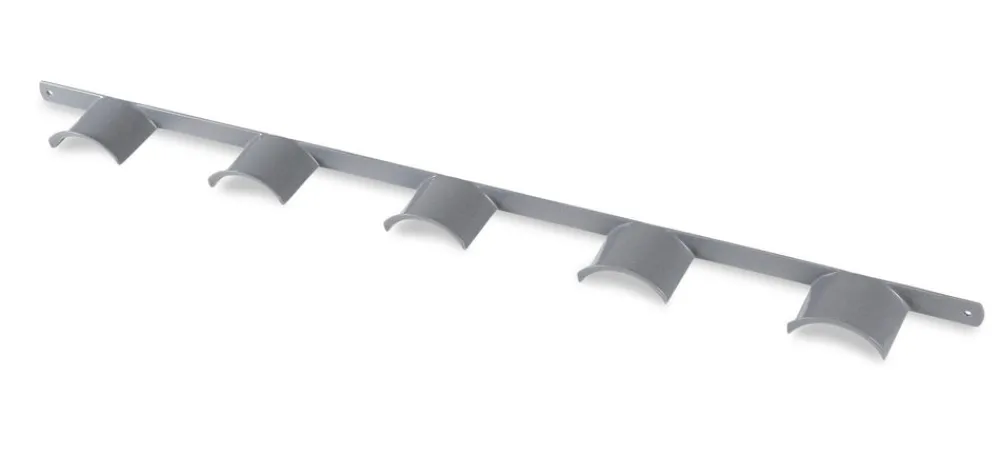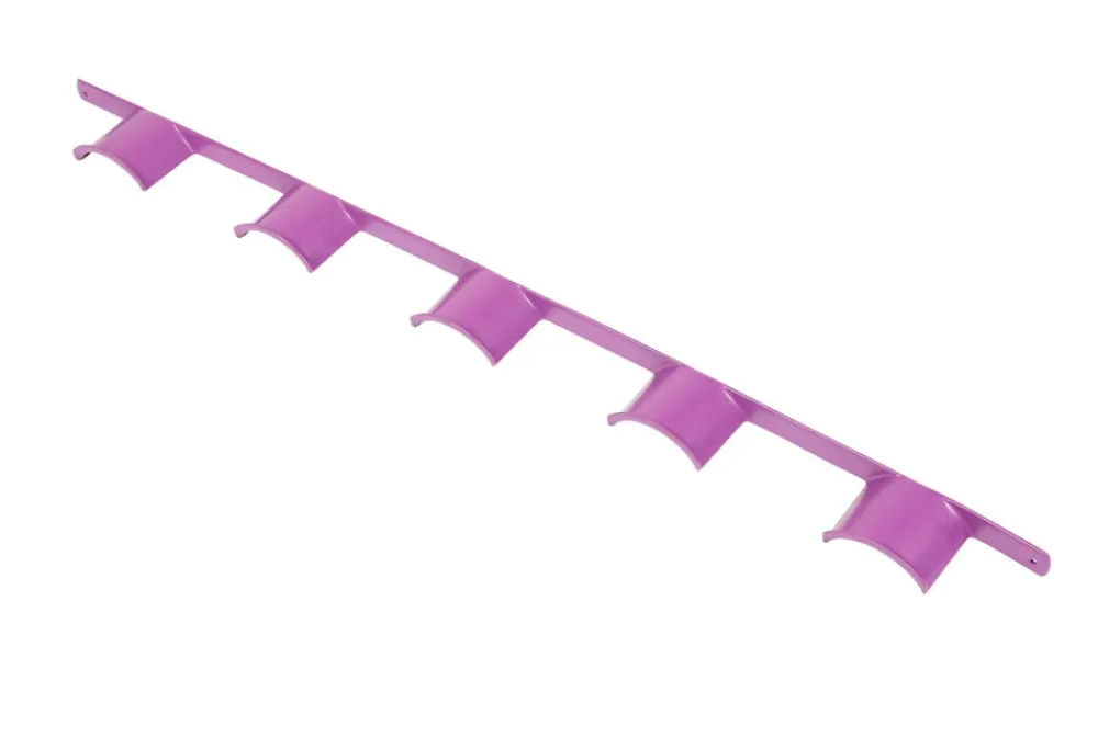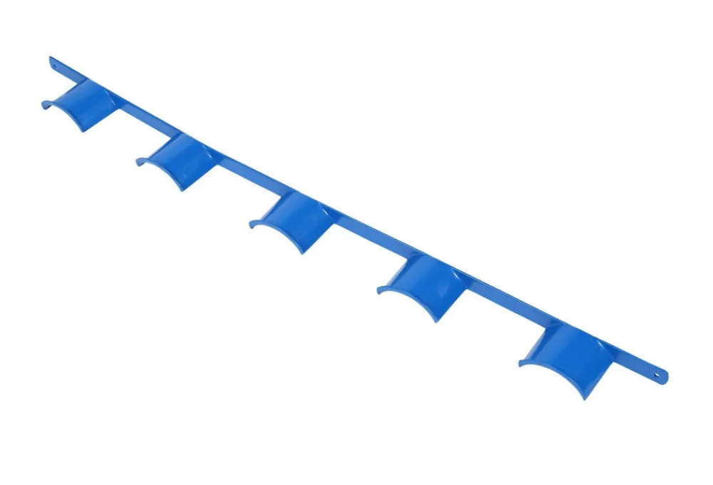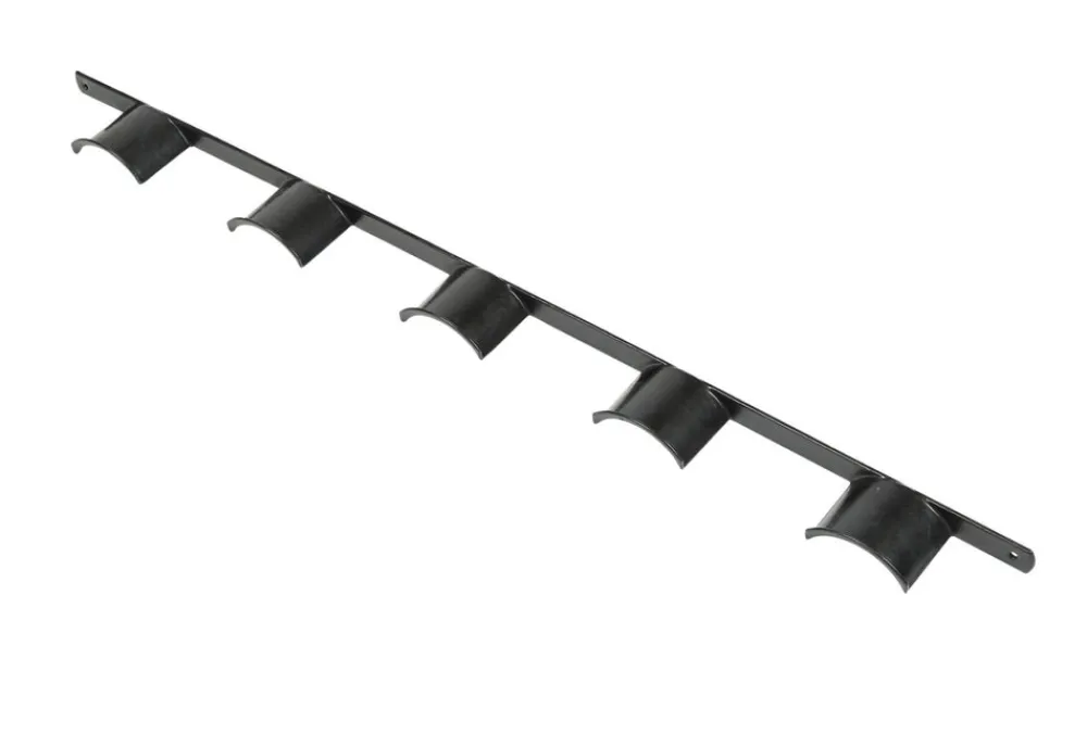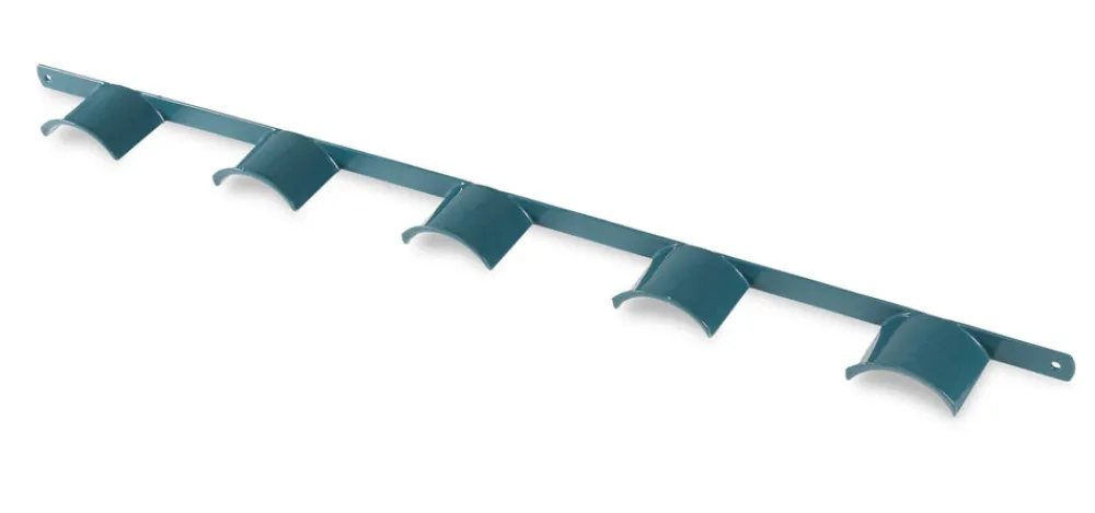 Wall hanging plastic coated rack to hold five bridles. Total length: 101cm.