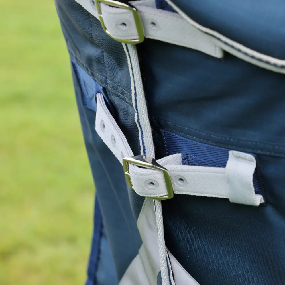 Highlander Original 50g turnout rug keeps the air flowing between the horse and the rug, maintaining comfort on mild wet days. Freedom-feel shoulder gussets remove tension during activity. Trigger clip chest fastenings give two fit options, touch close chest patches keep the rug in place while securing. The standard neck has D-rings for the attachment of a neck cover which can be purchased separately. Key features: deep shoulder gussets, fully lined, twin quick clip chest fastenings, adjustable cross surcingles, adjustable fillet strap, integrated leg strap loops, tail flap, reflective detail. Technical info: ShireTex® 600 denier ripstop outer. 50g polyfill. PFC-free outer with taped seams. Waterproof to 3000mm, Breathability 3000g/m2. Durable Waterproof Repellent (DWR) prevents saturation – water beads on the fabric and runs off. WarmaRug Compatible – Upgrade this rug’s warmth rating using separate rug liners in 100g or 200g. Machine washable.