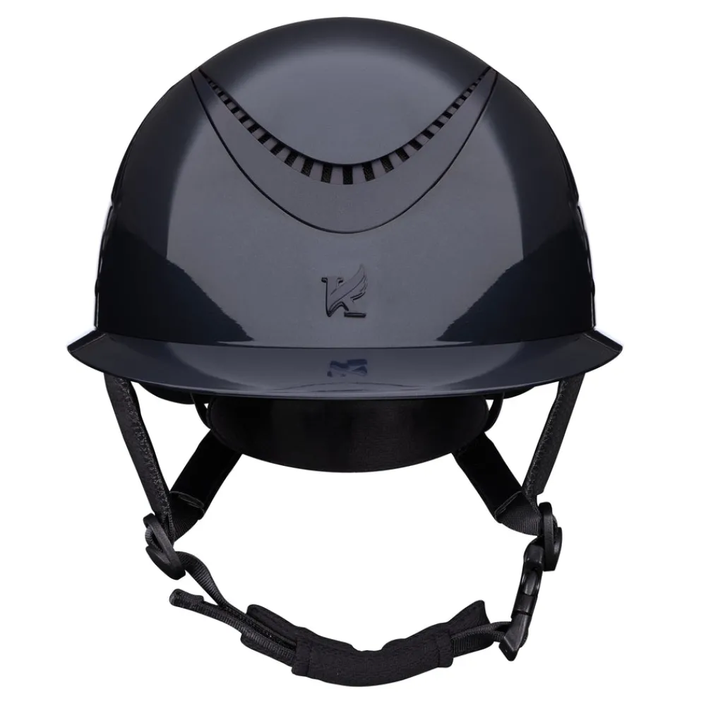 Fine tune your fit with dial adjusted Karben Ellipse riding hats. The Alina adds drama with high gloss and a contrast gloss ellipse frame for definition. Designed with carefully balanced geometry, the wide peak frames the face, the low profile sits deep on the head. FINER DETAIL: Scratch resistant carbon wrapped rim. Velvet touch under peak lining. BESPOKE FIT Micro Adjustable Dial System. PASSIVE VENTILATION SYSTEM air channels vent towards the head. SHOCK ABSORBING expanded polystyrene inner shell engineered with targeted ventilation shafts. Flexible fixed peak for impact energy absorption. Deeply padded COMFORT LUXE LINER with CoolDryTM headband and THERMOREGULATING 3D mesh crown. Fully adjustable 4-point harness with soft faux leather wrapped sides. Quick release buckle. Removable anti-rub chin guard. Machine washable linings. Reusable drawstring storage bag. Thoroughly tested and certified to PAS 015:2011 and EN 1384:2023. CE & BSI Kitemark.