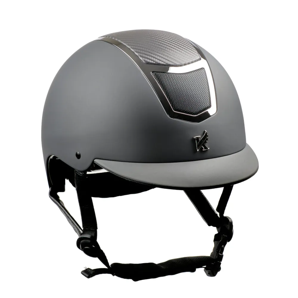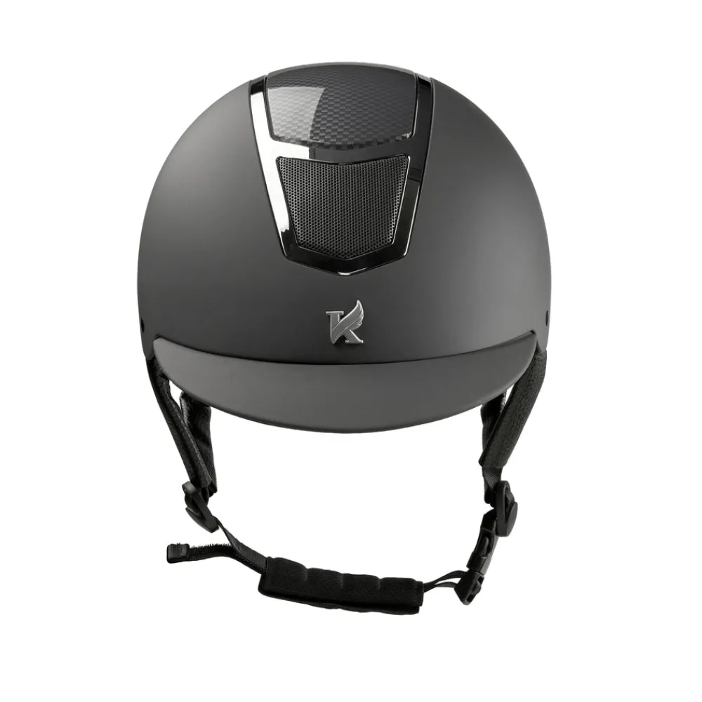 Every detail counts where safety and style are concerned and the Karben Sienna riding hat will not let you down. Chrome accents frame a central vented panel with a tough carbon finish crown. Tested to BSI standards and certified to PAS15:2011 with a flexible peak and bespoke micro-adjusted dial fit the hat feels lightweight and secure. FINER DETAIL: Low profile form. Smooth, lightweight outer shell. Neat and flattering. Fixed peak – flexible for impact energy absorption in the event of a fall. BESPOKE FIT micro-adjustable dial system. MAXIMUM COOLING EFFECT front and rear air vents. THERMOREGULATING 3D mesh liner. CoolDryTM headband. Expanded polystyrene inner shell with ventilation holes. Fully adjustable 4-point harness with leather look side panels. Quick release harness buckle. Removable anti-rub chin guard. Machine washable removable inner linings. Thoroughly tested and certified to PAS 015:2011 and EN 1384:2023. CE & BSI Kitemark.