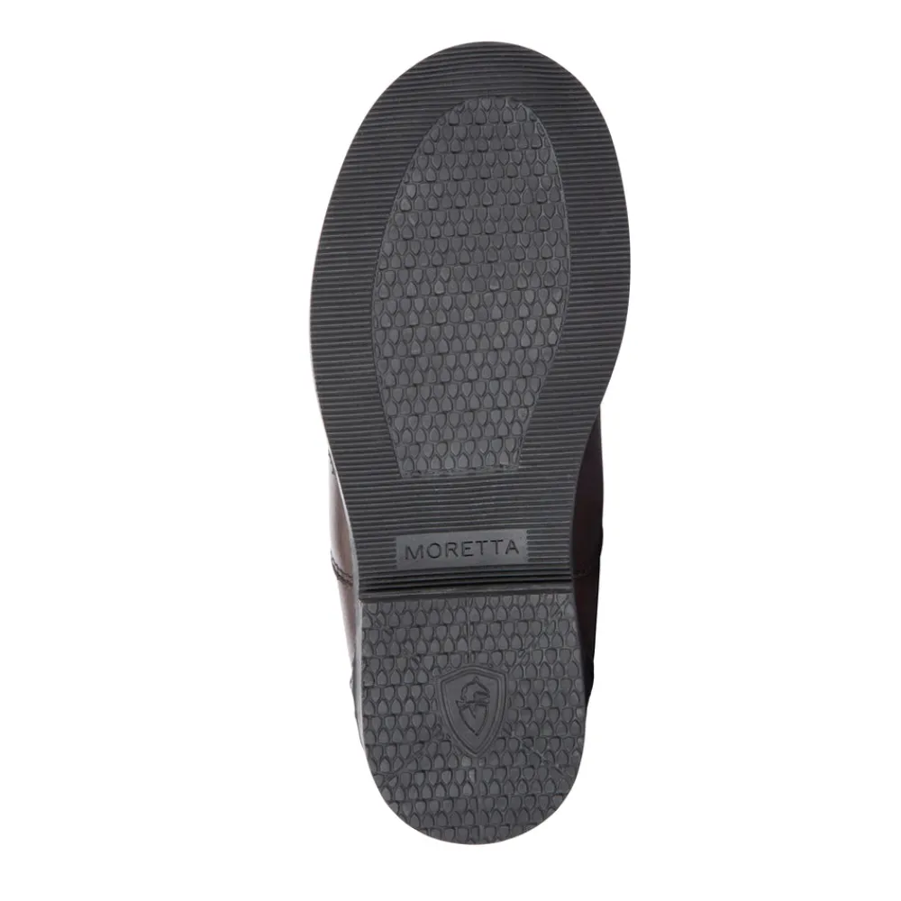 Smarten up for pony riding, Moretta Materia leather paddock boots are suitable for all riders, and offer a great balance between comfort and stability. The zip fronts are easy to fit, the boots have a rounded toe for plenty of space. Brogue stitching detail looks smart and the high shine polished finish resists water stains and a quick polish will restore any wear and tear. Key features: Full grain leather. WickAway stay dry lining. UltraFit ankle insert. Stabilising footbed. Moretta shock absorbing rubber outsole.Â