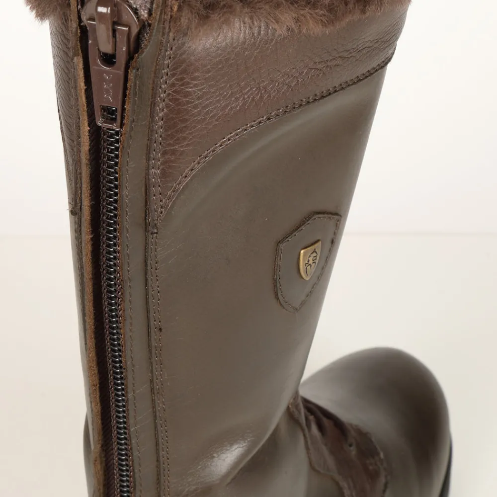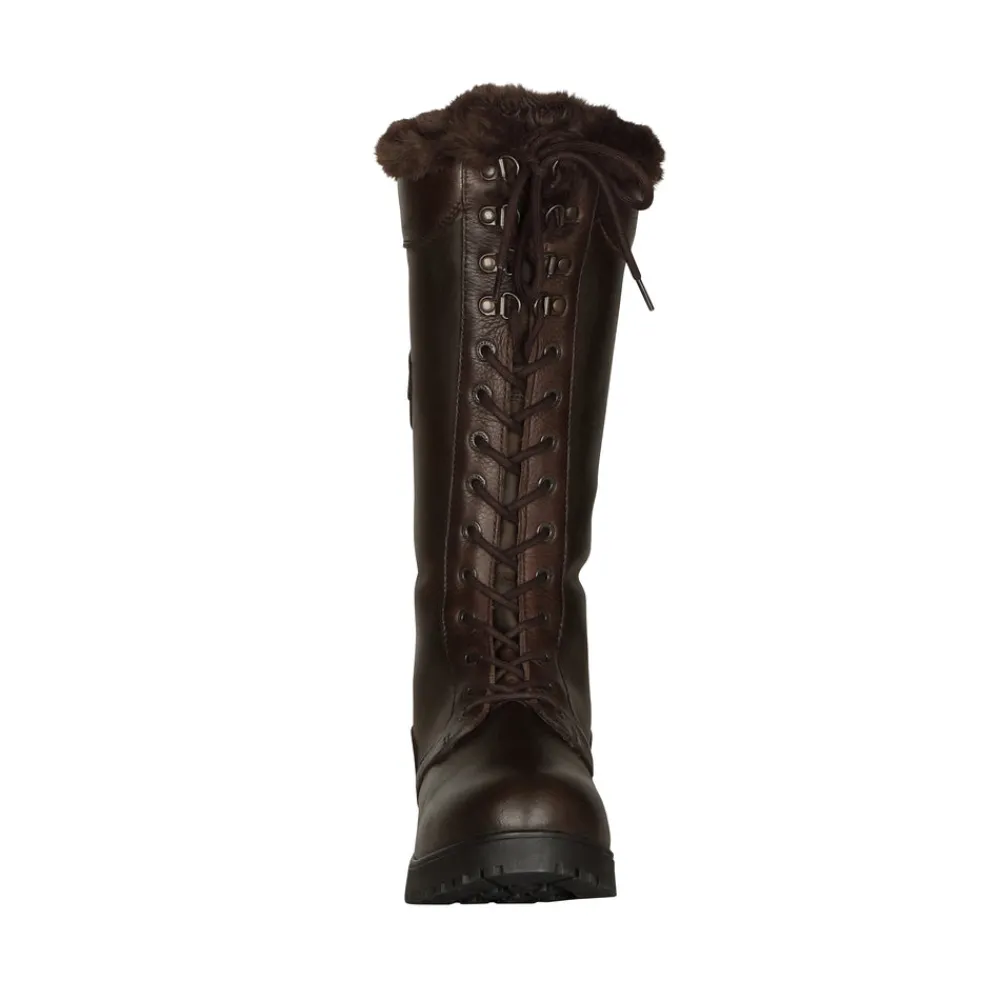Designed for country style, the flattering Nola country boots offer perfect-fit lace adjustment, with a convenient full length zip. The upper is contoured for ergonomic comfort, the padded collar fits neatly. Moisture resistant technologies keep feet warm and dry. A membrane sock and ankle gusset block water penetration whilst allowing the boots to remain breathable. DRYFLEX water resistant leather dries quickly and remains flexible. Attractively oiled to provide further weather protection with minimal maintenance. Luxe faux fur thermal linings keep the cold out. ActiveFlex insoles are anatomically moulded to offer anti-shock joint support and Energiser instep relief. The performance sole is optimised for traction. Key features: DRYFLEX water repellent leather. Luxe faux fur lining. Waterproof membrane foot sock. Adjustable lace front. YKK zip. Waterproof gusset with finger pull. ActiveFlex insole with Impact Support System. Antiqued badge. Moretta XTR-Terrain outsole. Steel shanks.