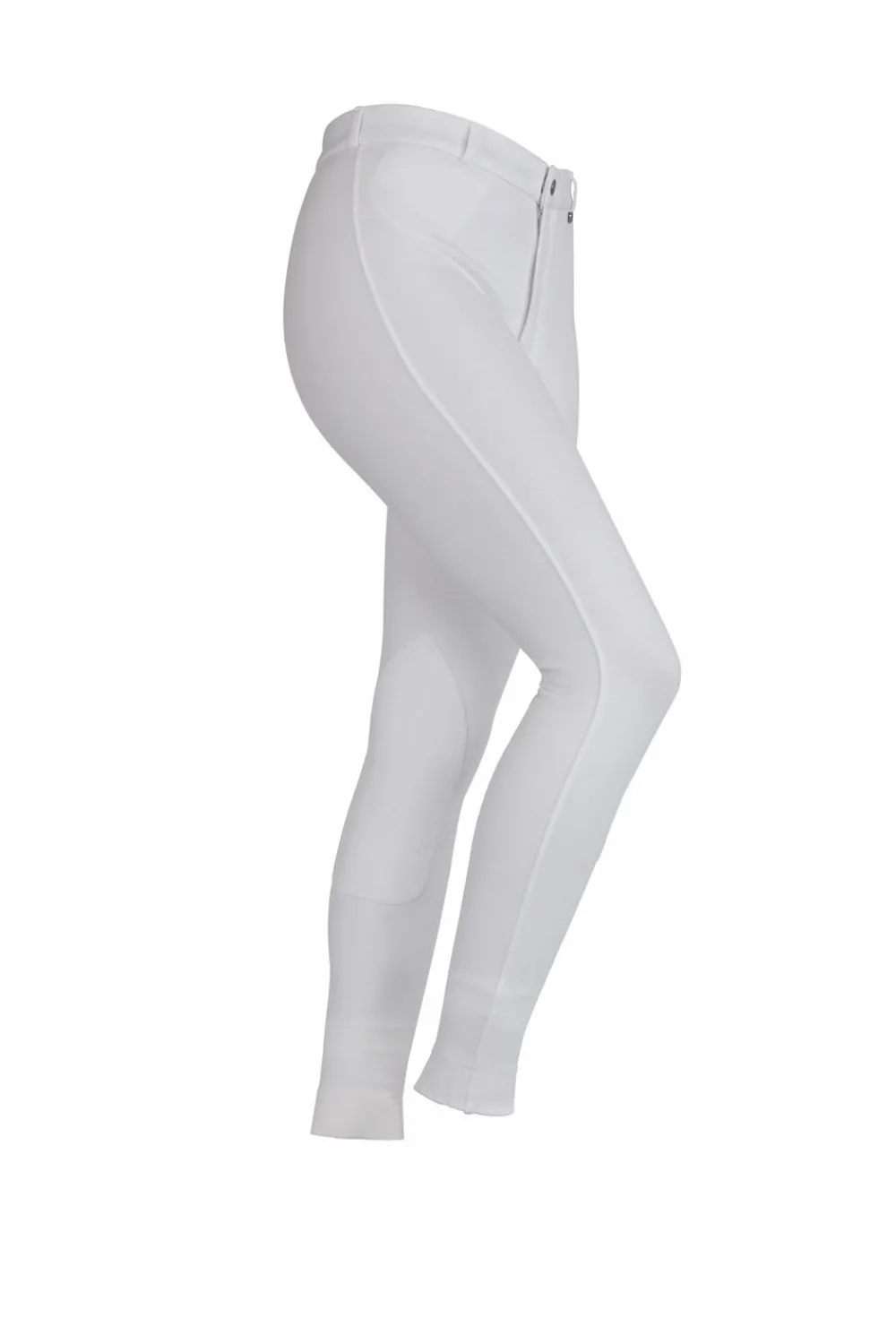 Great all round riding legwear, 4-way stretch knitted Creora® fabric gives these jodhpurs superior comfort and fit. Self-fabric contoured seat and knee patches, flat front, belt loops and inner hip pocket.