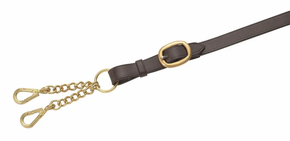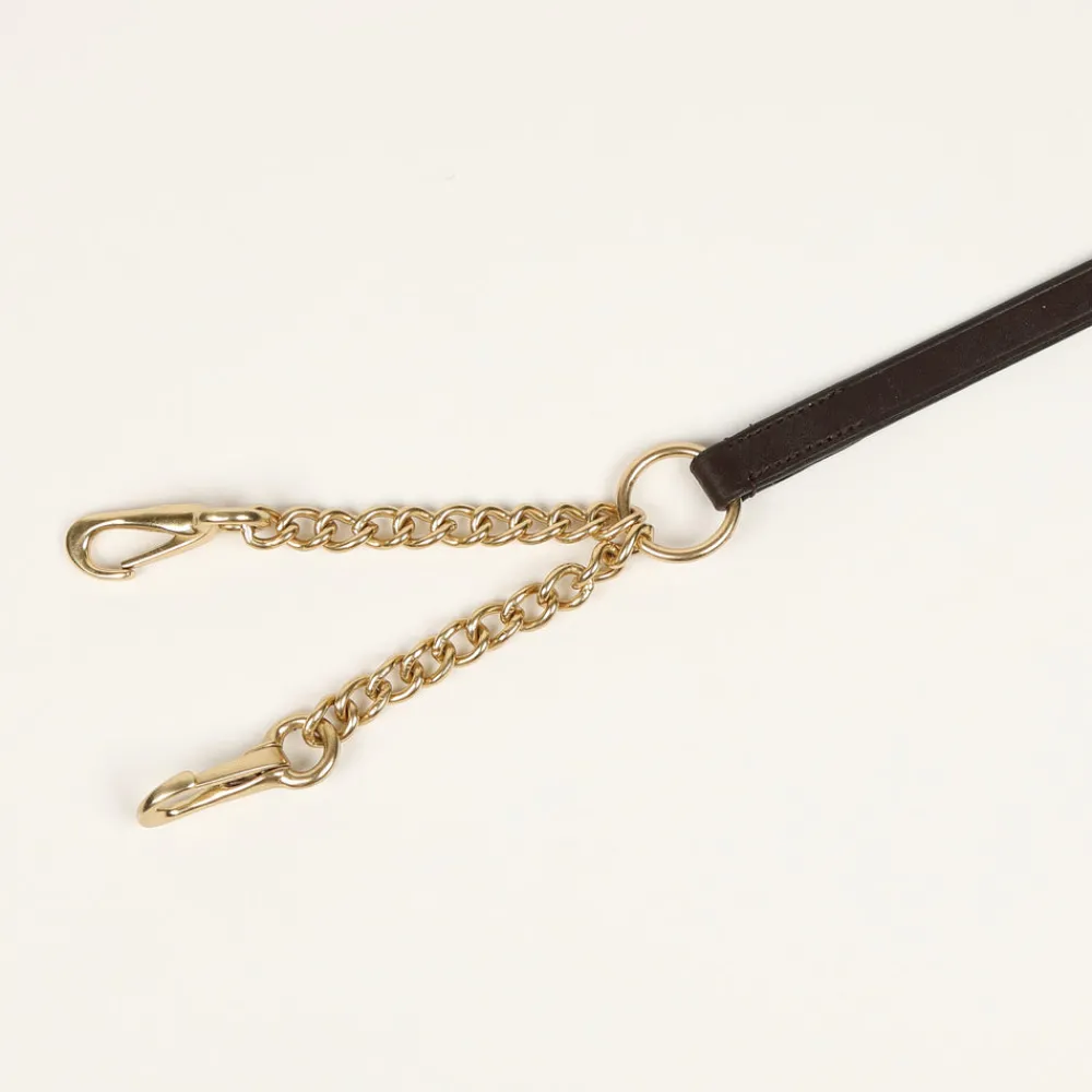 Velociti GARA leather lead rein with small Newmarket chain. 79″ (2m) long, 5/8″ (16mm) wide. Durable leather is eco-friendly vegetable tanned, hand-stitched with self-colour thread. Restrained design gives Velociti GARA leatherwork enduring appeal.