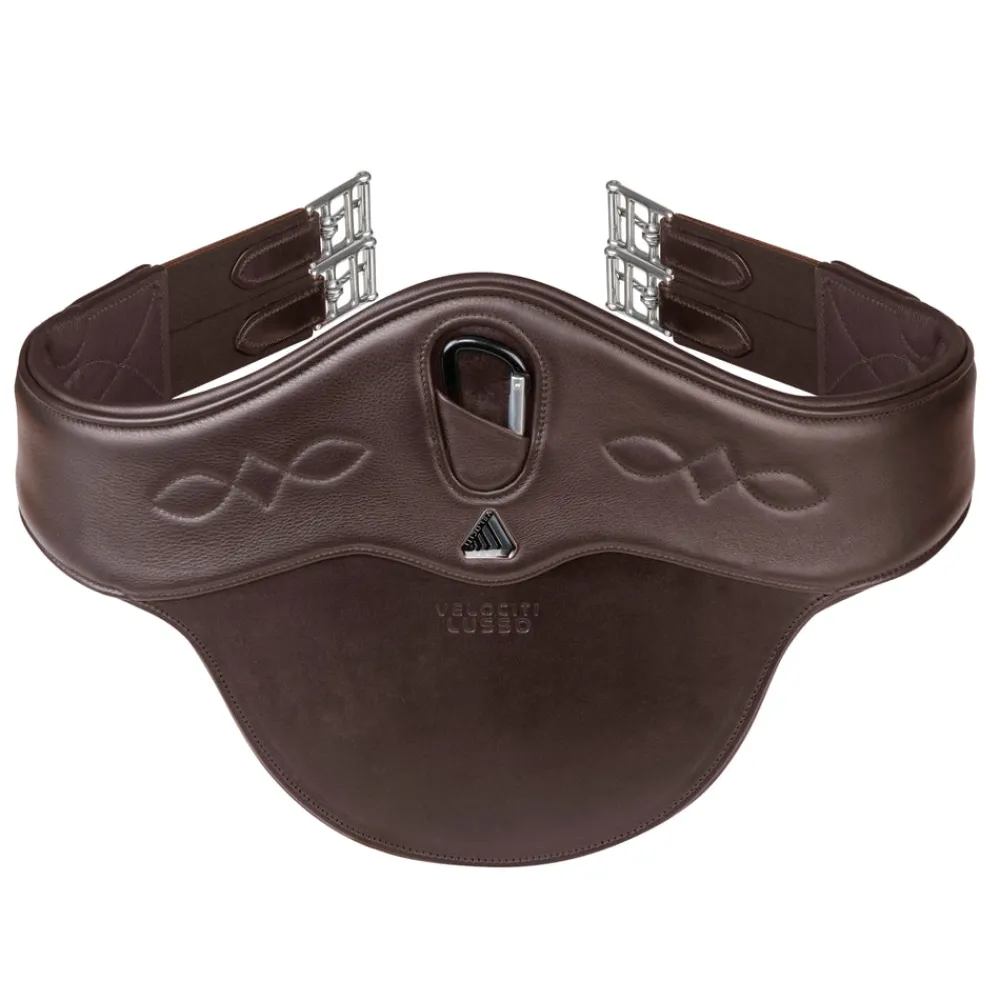 Designed with sensitivity and precision engineered, Velociti Lusso, Pro Series Luxe girths are the perfect partner for the next level equestrian. The Stud Girth features a symmetry promoting contoured form for an ergonomic, natural fit and shaped to protect the underside of the horse when jumping. A sleek, carefully engineered design incorporates spaces for fittings to keep a refined feel. Attractive handcrafted stitch detail further enhances this already attractive girth. Butter soft calf leather lining is forgiving against the body. Pressure dispersing padding gives the horse greater freedom of movement with improved range for advanced performance. Smooth, continuous girth edges are padded and curve away from the horse to prevent a ‘cut in’ edge. A strong and hardwearing outer leather flexes but resists stretching for longevity. Evenly spaced D-rings and central carabiner for easy attachment of training aids or breastplates. High quality stainless steel fittings and twin girth buckles with roller. Triple layer pressure alleviating elastic at either end. Eco-friendly vegetable tanned European leather.